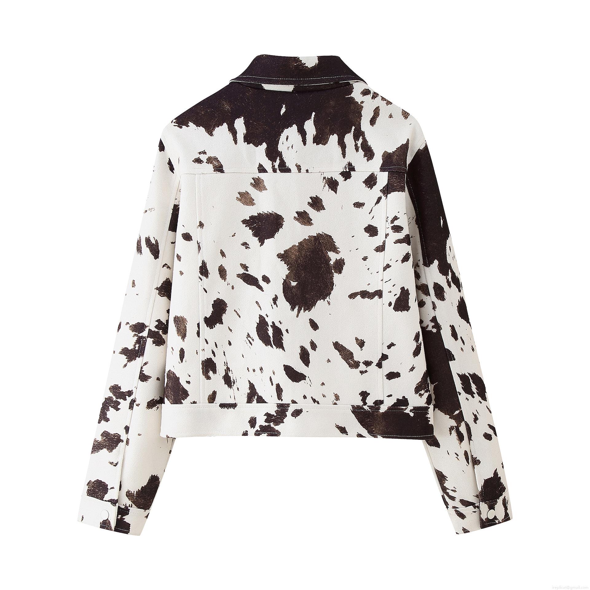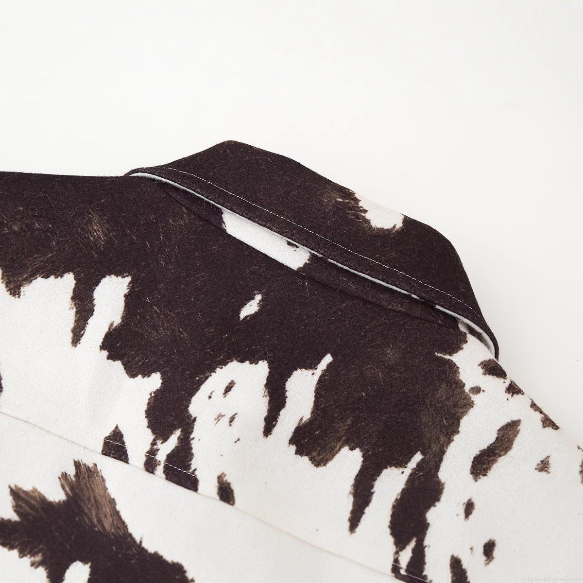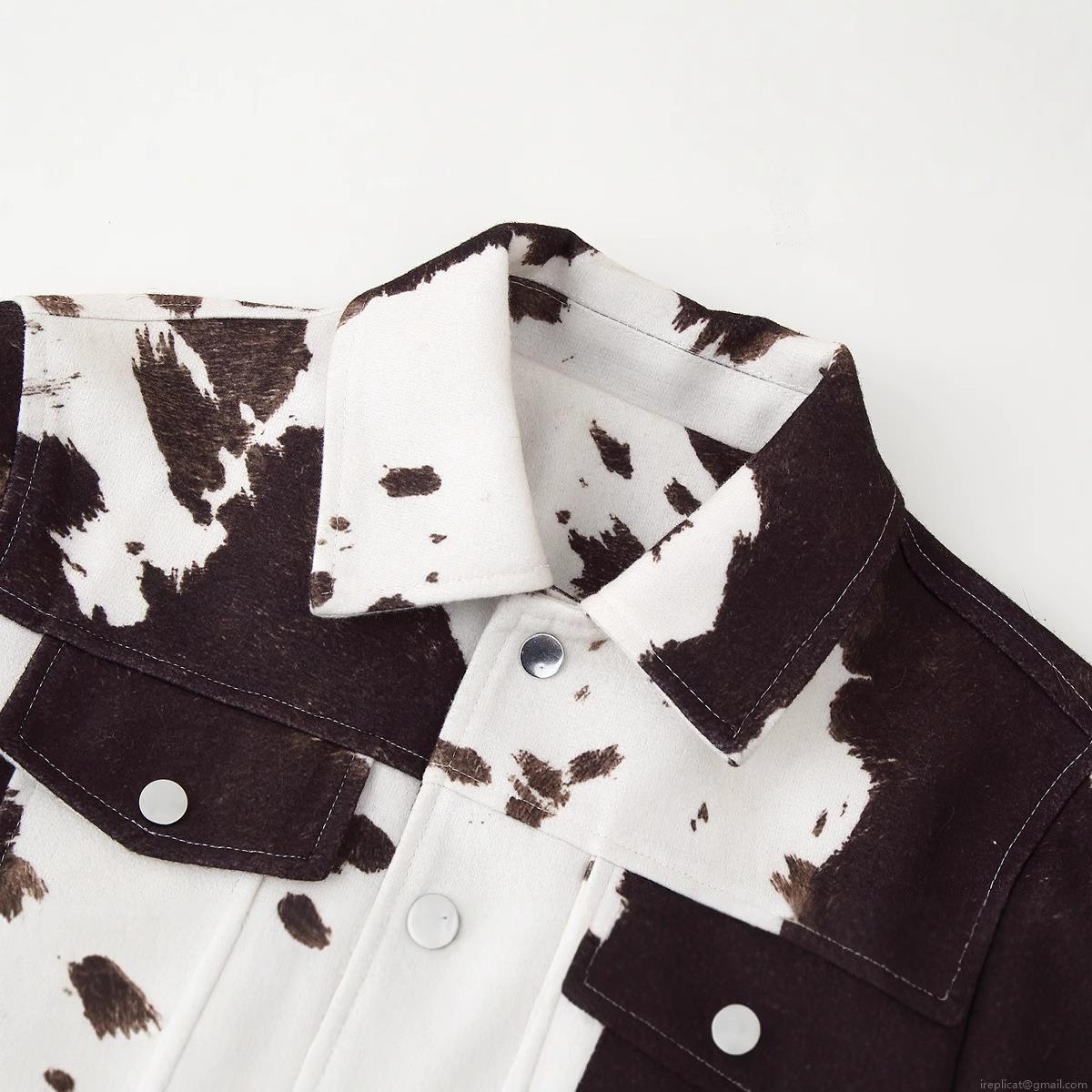 Animal Print, Cow Print, Irregular Prints, Metal Buttons, Flap Pocket