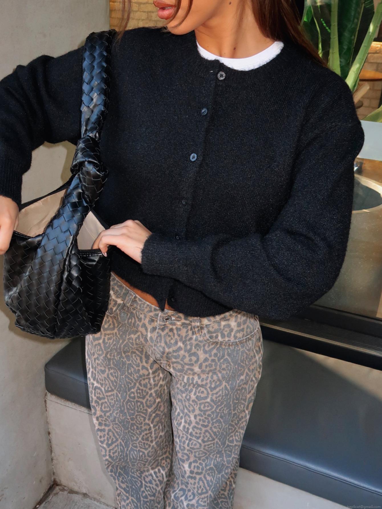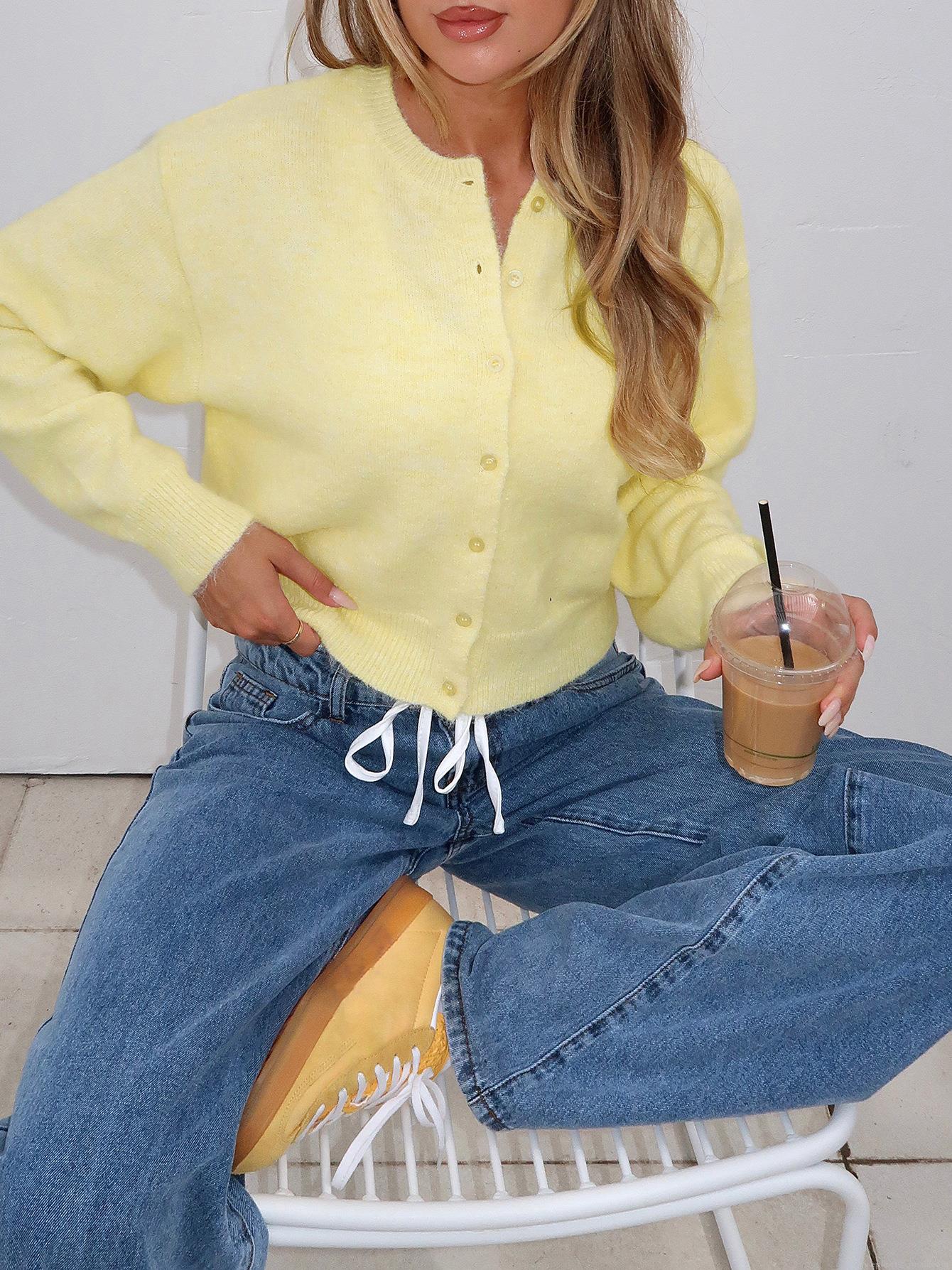 Women's Fashion Cropped Knitted Cardigan Long Sleeve Round Neck Button Up Acrylic Blend Sweater Top For Autumn Winter