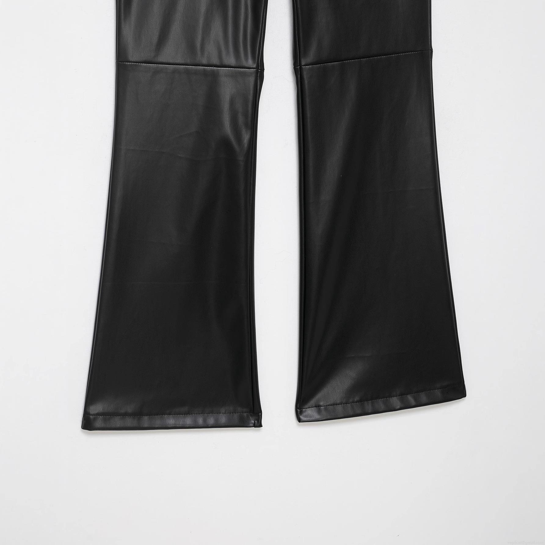 Women's PU Faux Leather Micro-Flare Pants Mid Waist Patchwork...