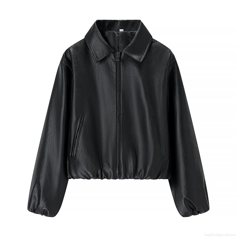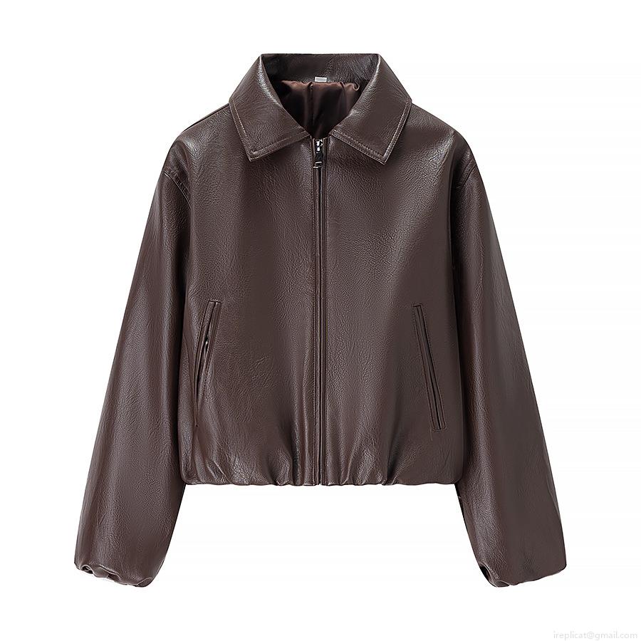 Women's Fashion Faux Leather Jacket Casual Lapel Long Sleeve Loose Fit PU Moto Biker Coat With Pockets Vintage Streetwear Outerwear For Autumn Winter