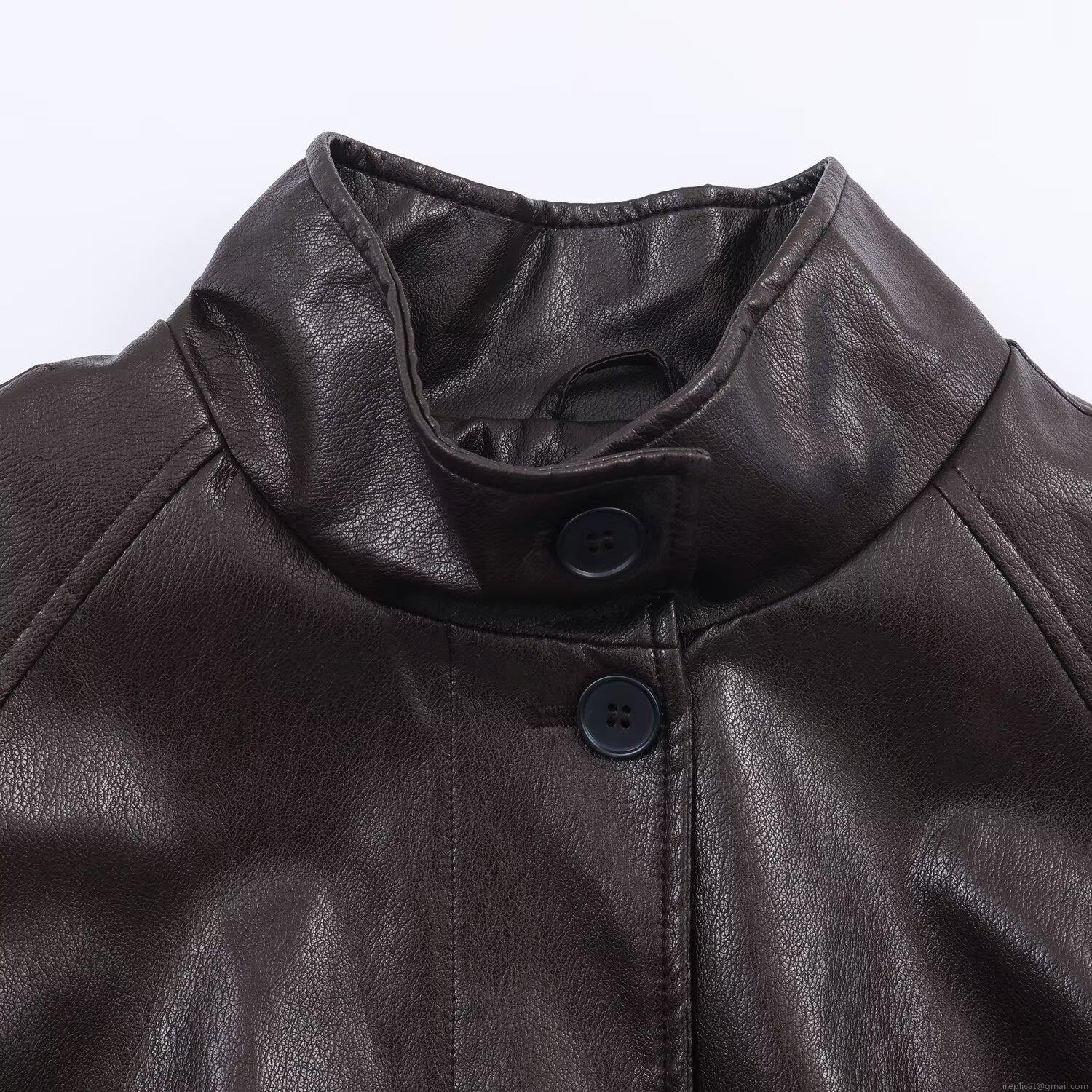 Women's Fashion Faux Leather Stand Collar Jacket Loose Casual PU Leather Zip Up Coat Long Sleeve Windproof Outerwear Solid Color Retro Style For Ladies Daily Wear