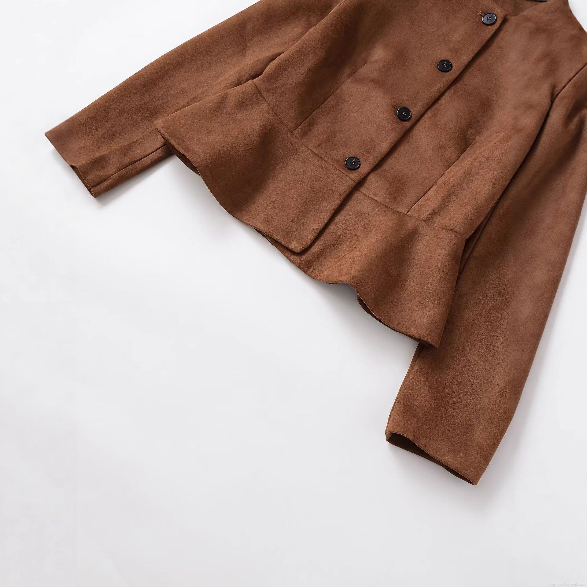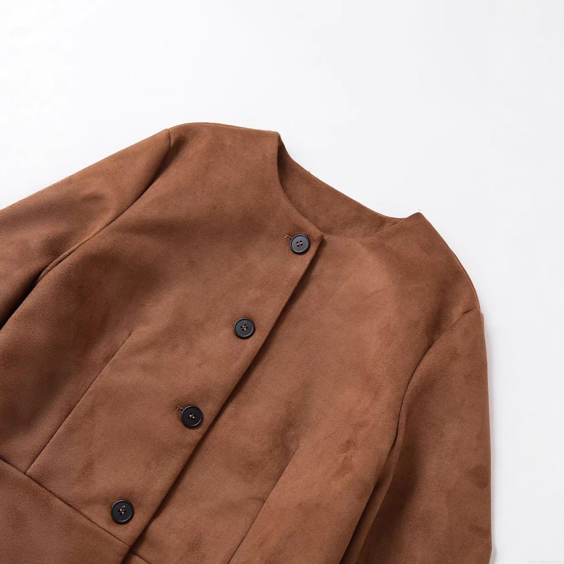 Women's Fashion Faux Suede Jacket Solid Color Round Neck Single Breasted Short Coat Streetwear Casual Outwear For Autumn Winter