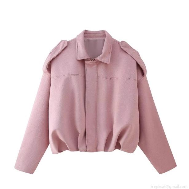 Women's Fashion Faux Suede Pilot Jacket Casual Lapel Short Coat Zip Up Long Sleeve Outerwear With Shoulder Straps For Lady