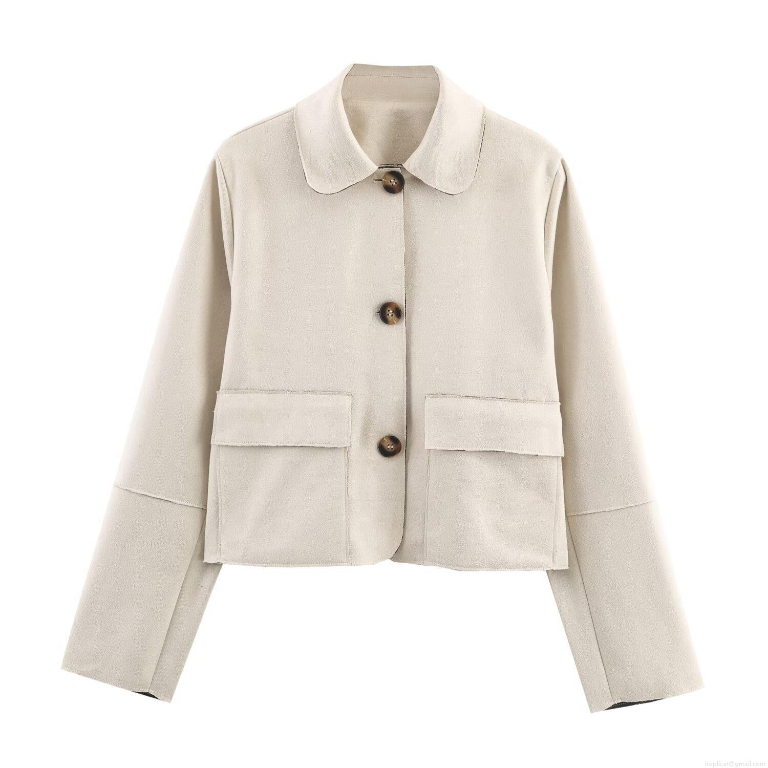 Women's Fashion Faux Suede Short Jacket Lapel Single Breasted Long Sleeve Coat With Pockets Casual Solid Color Outerwear For Women Spring Autumn