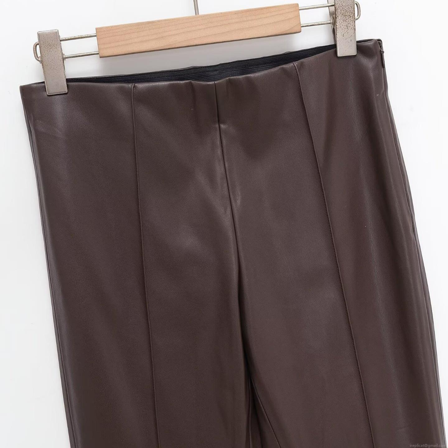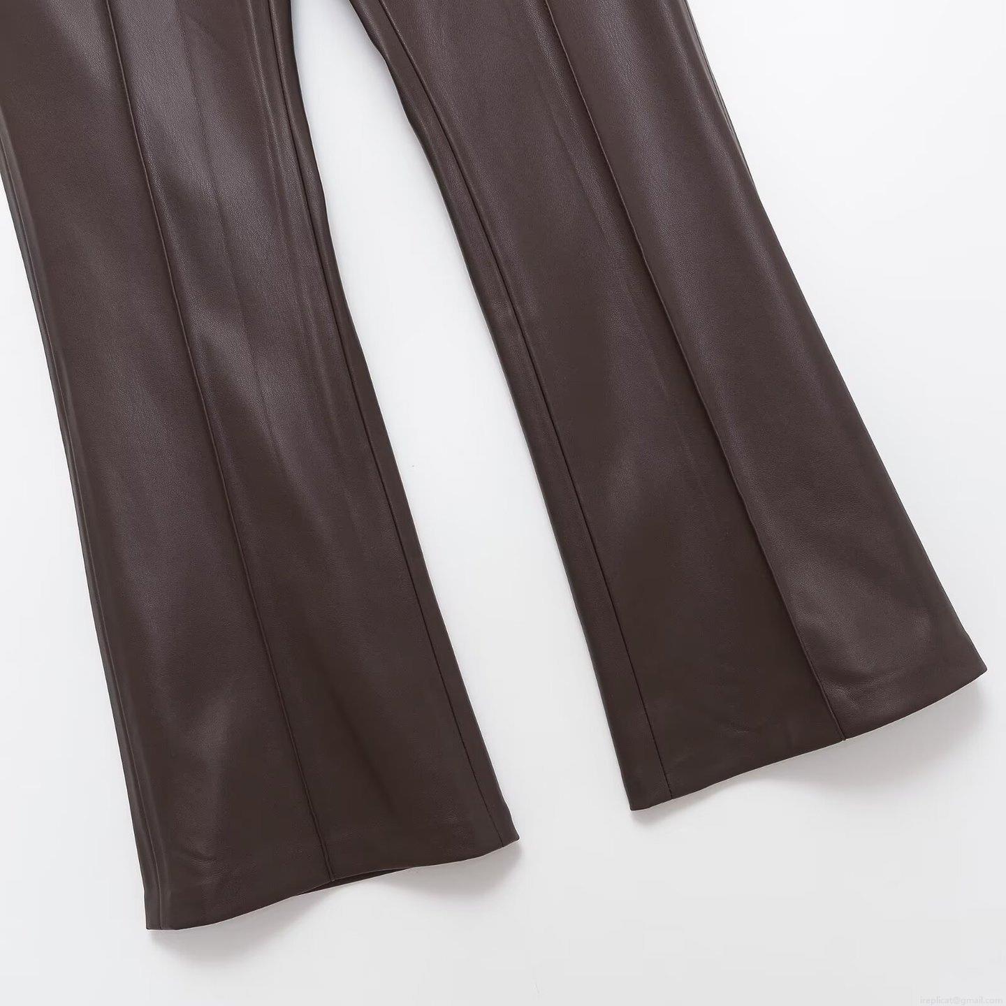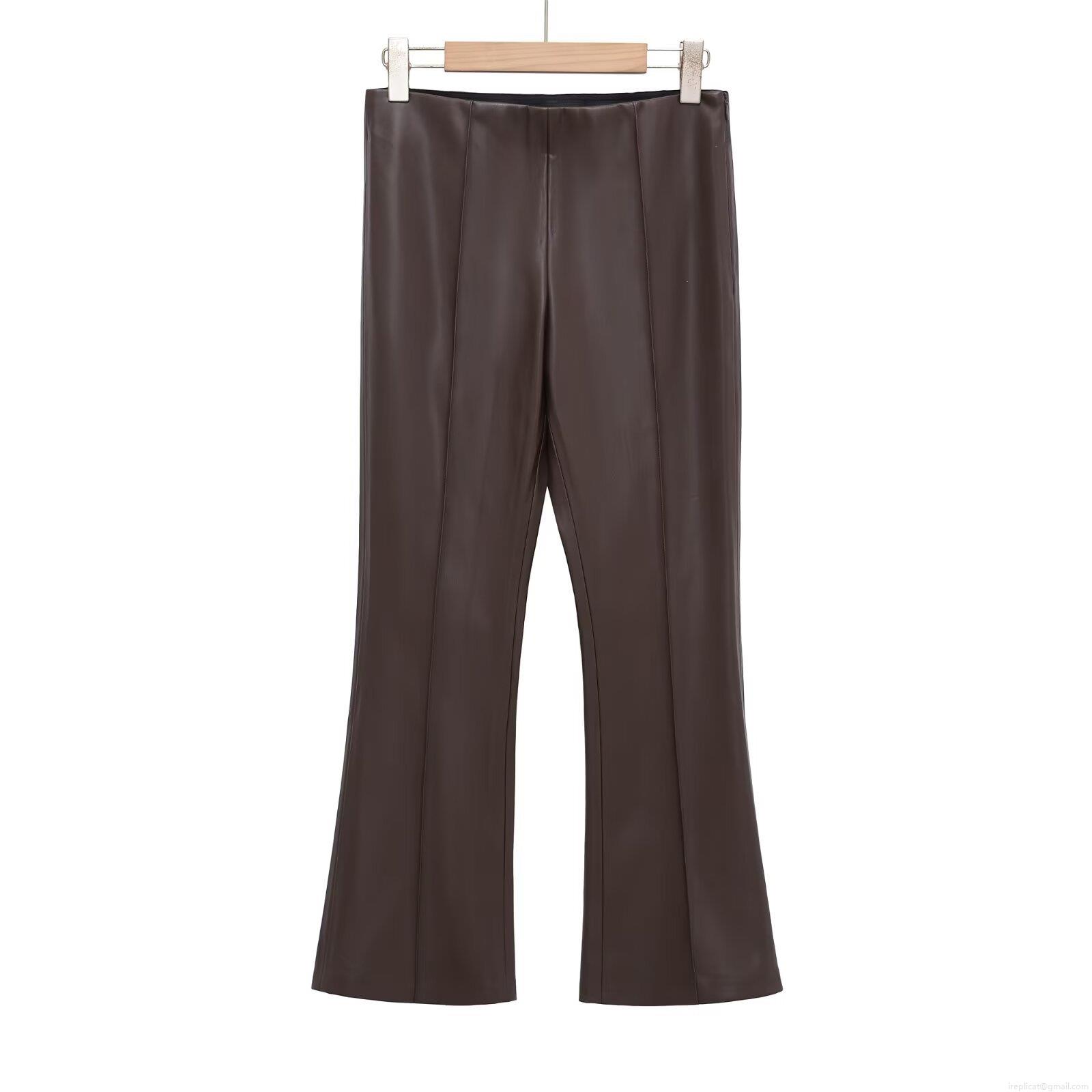 Women's Fashion High Waist Faux Leather Flared Pants Slim Fit Fleece Lined PU Leather Trousers For Winter Daily Casual