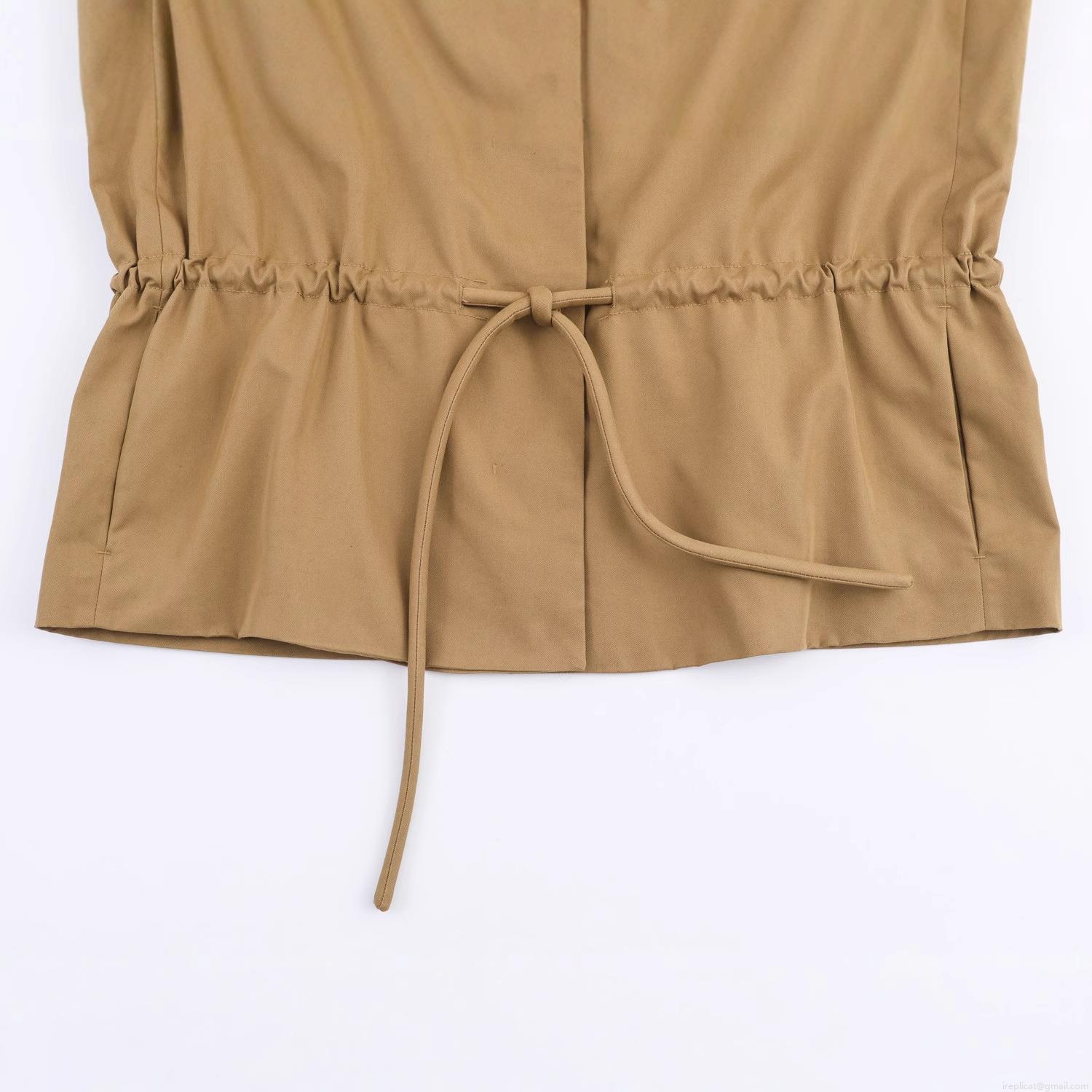Women's Fashion Khaki Short Parka Jacket Polyester Drawstring Waist Adjustable Collar Windbreaker Casual Long Sleeve Outerwear For Ladies