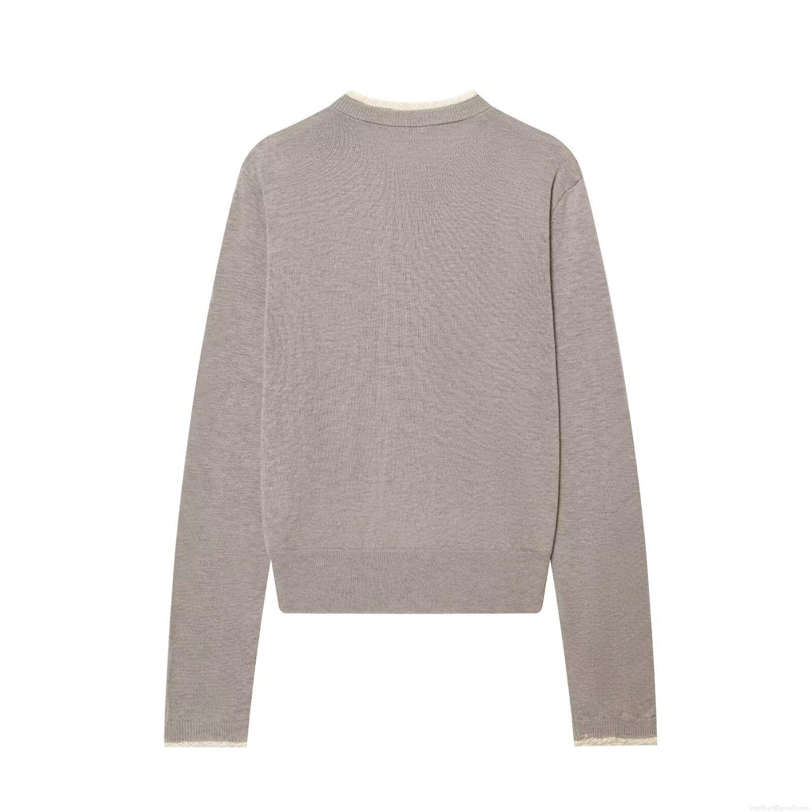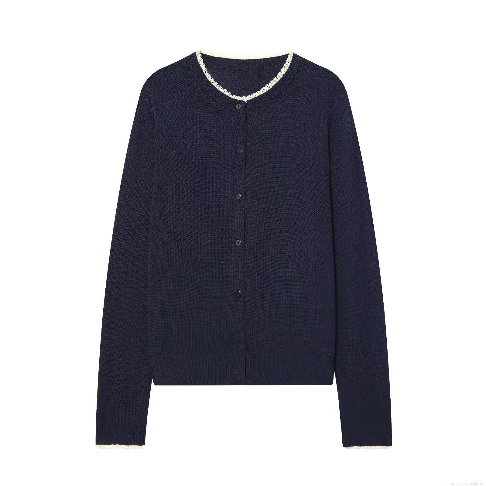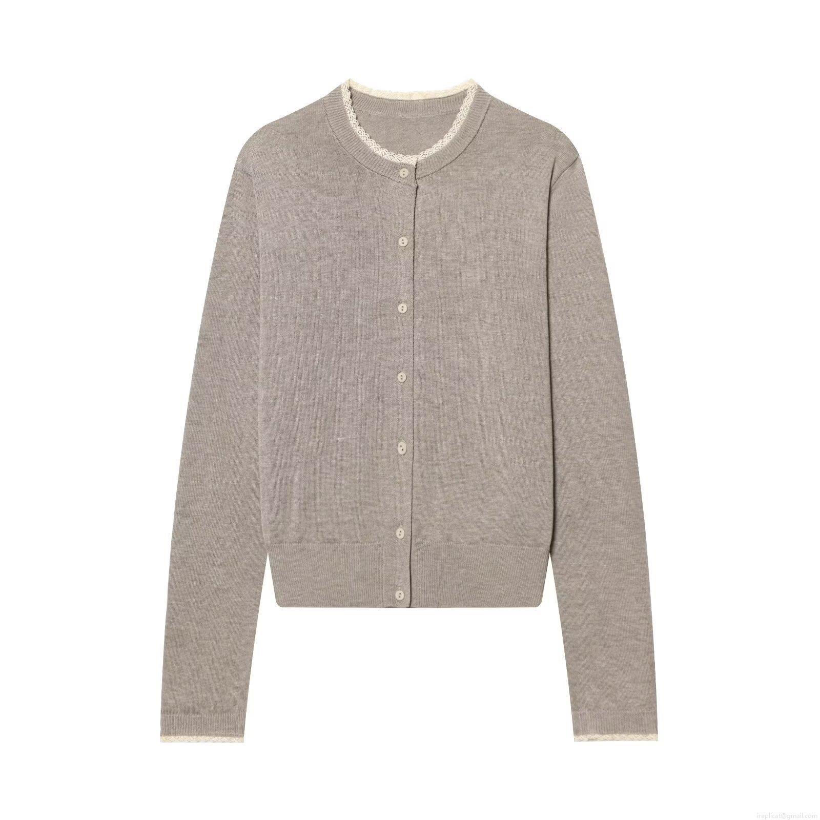 Women's Fashion Lace Trim Knit Cardigan Single-Breasted Long Sleeve Round Neck Cotton Blend Sweater Top Spring Autumn Casual Outerwear Clothing