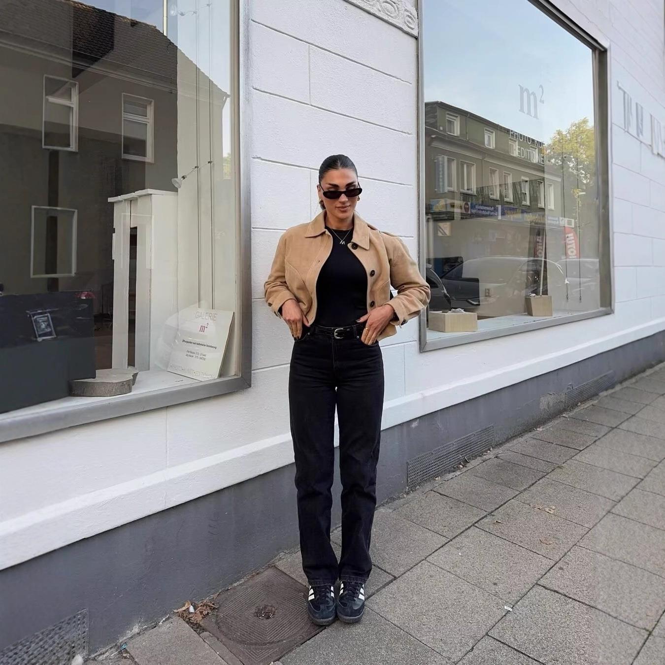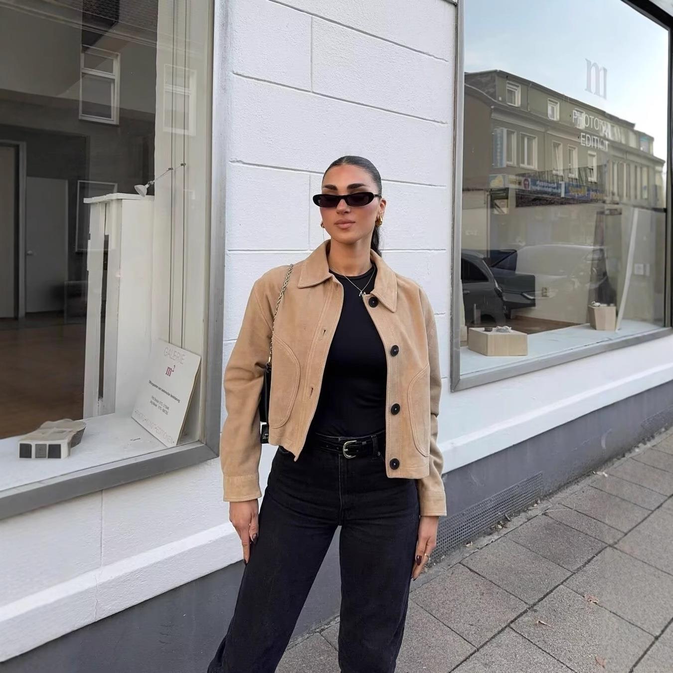 Women's Fashion Lapel Faux Suede Short Jacket Coat Solid Color Single Breasted Streetwear Outerwear For Autumn Winter Casual Daily Wear