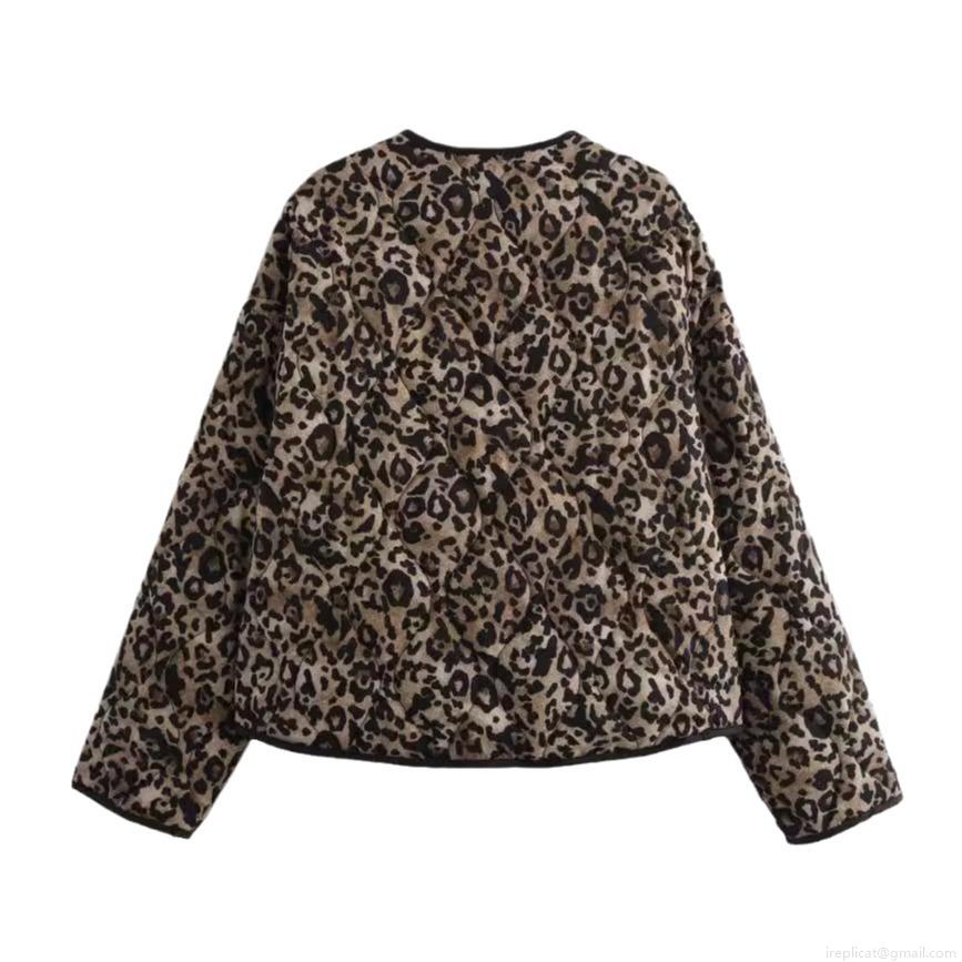 Women's Fashion Leopard Print Quilted Jacket 100% Polyester Round Neck Long Sleeve Loose Casual Padded Outwear Vintage Abstract Printed Coat With Pockets For Autumn Winter