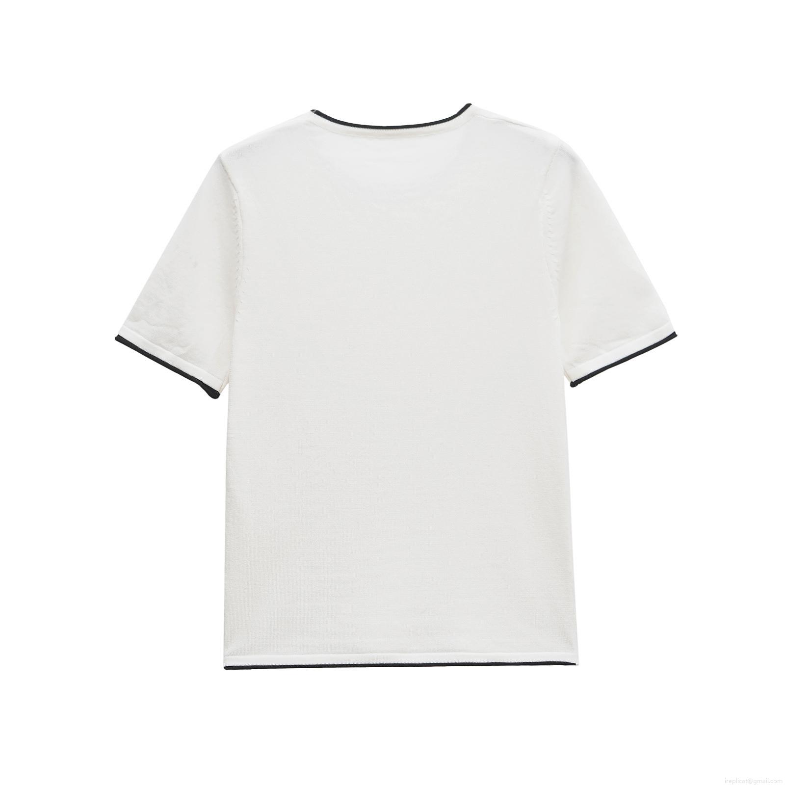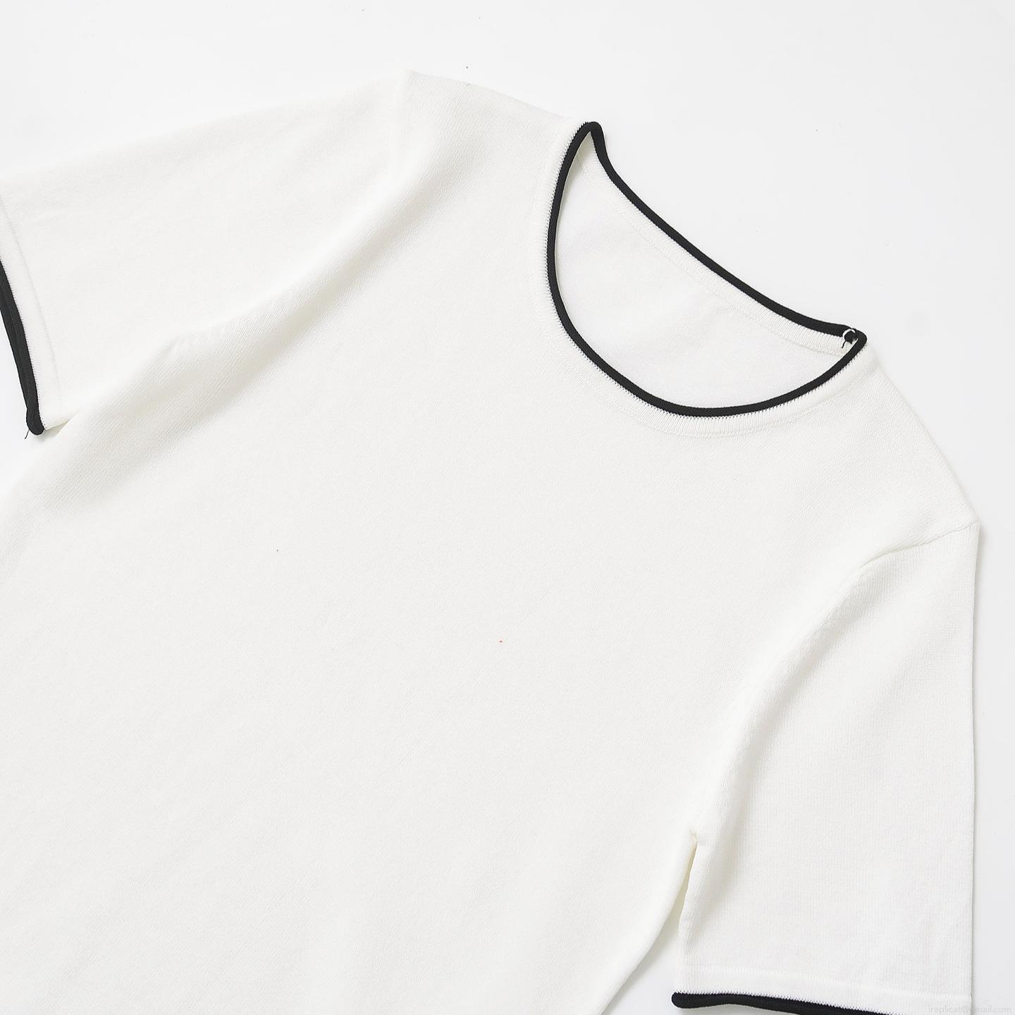 Women's Fashion Minimalist Mercerized Cotton Knit T-Shirt Contrast Trim Short Sleeve Round Neck Casual Daily Summer Top Breathable Soft Comfortable Top