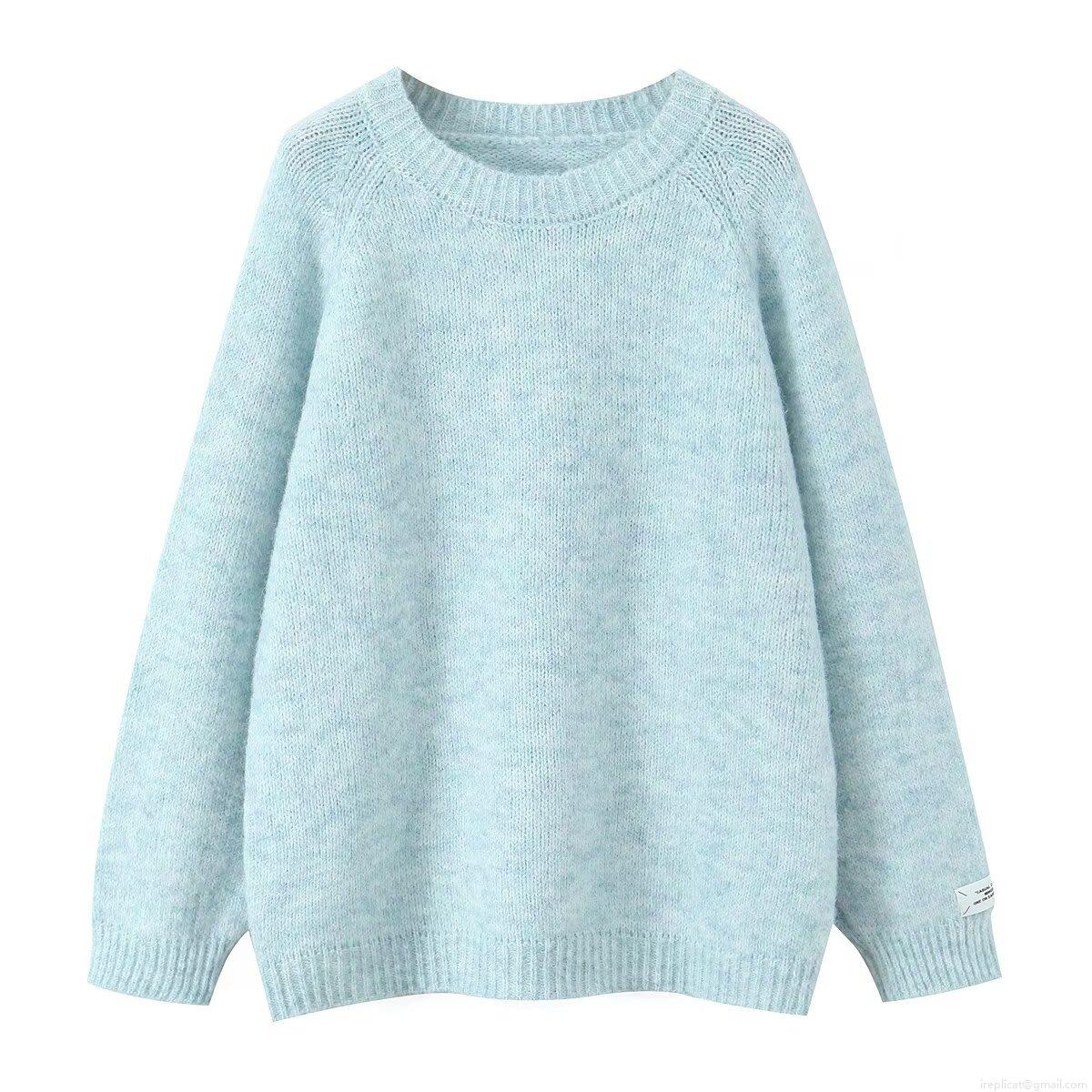 Women's Fashion Mohair Pullover Sweater Round Neck Loose Long Sleeve Solid Color Casual Knitted Jumper For Fall Winter