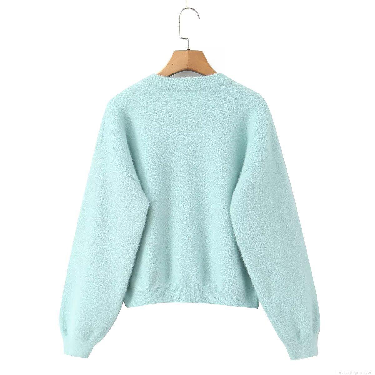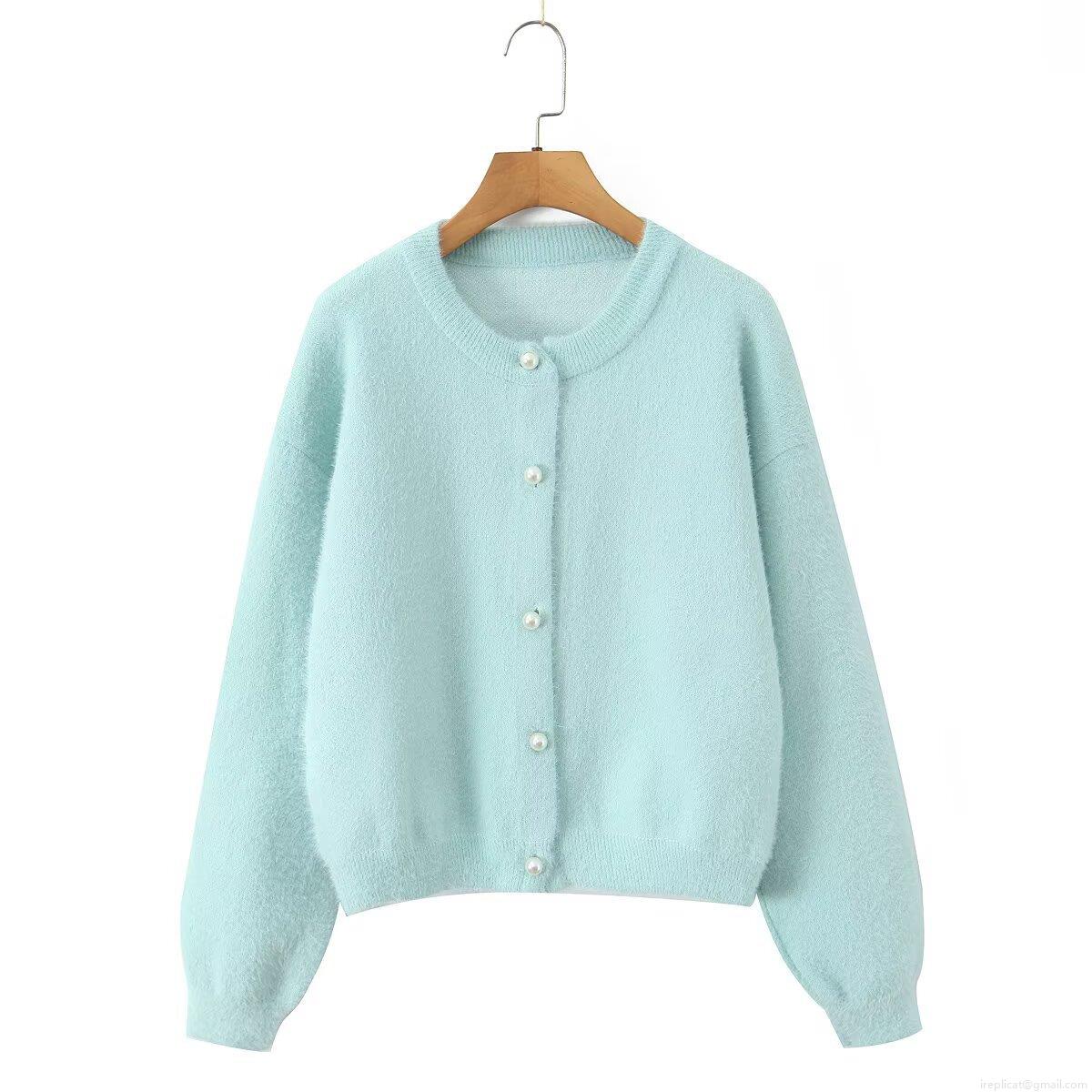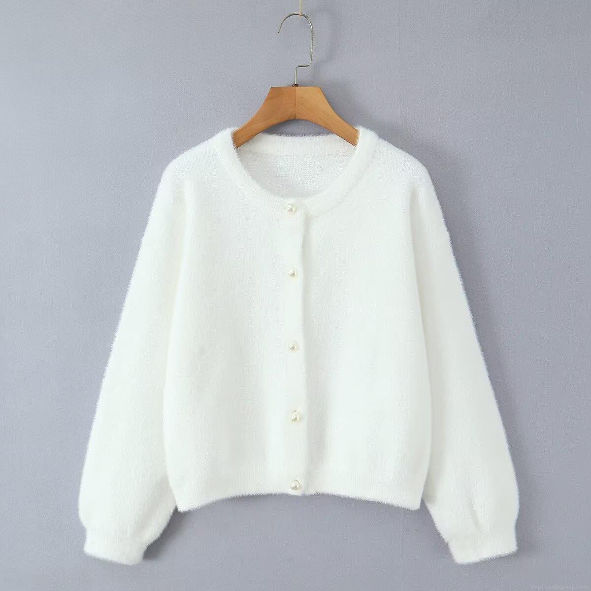 Solid Color, Pearl Buttons, Thickened Knit, Imitation Mink Fur