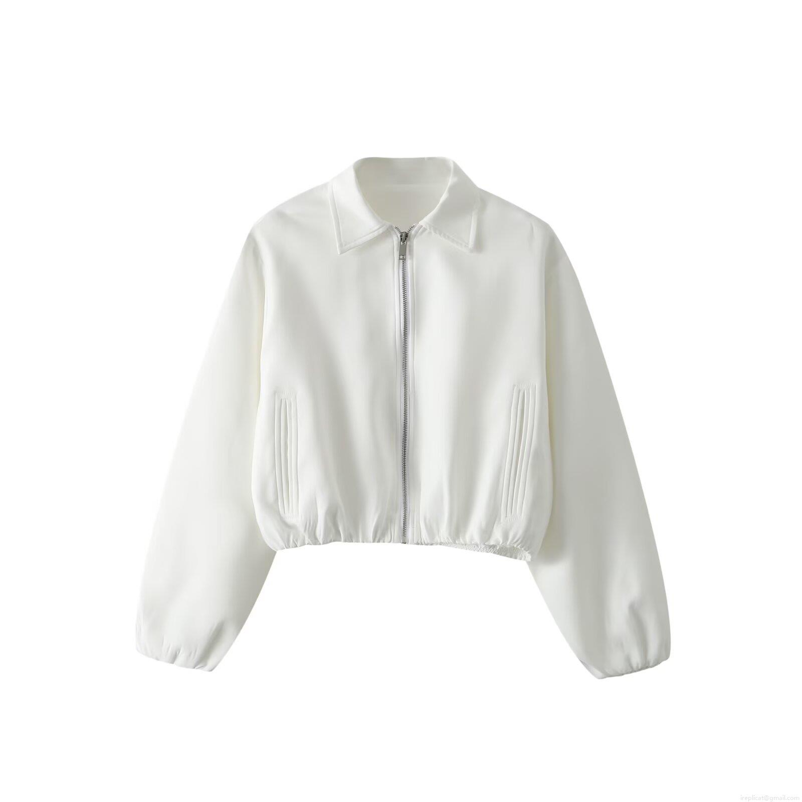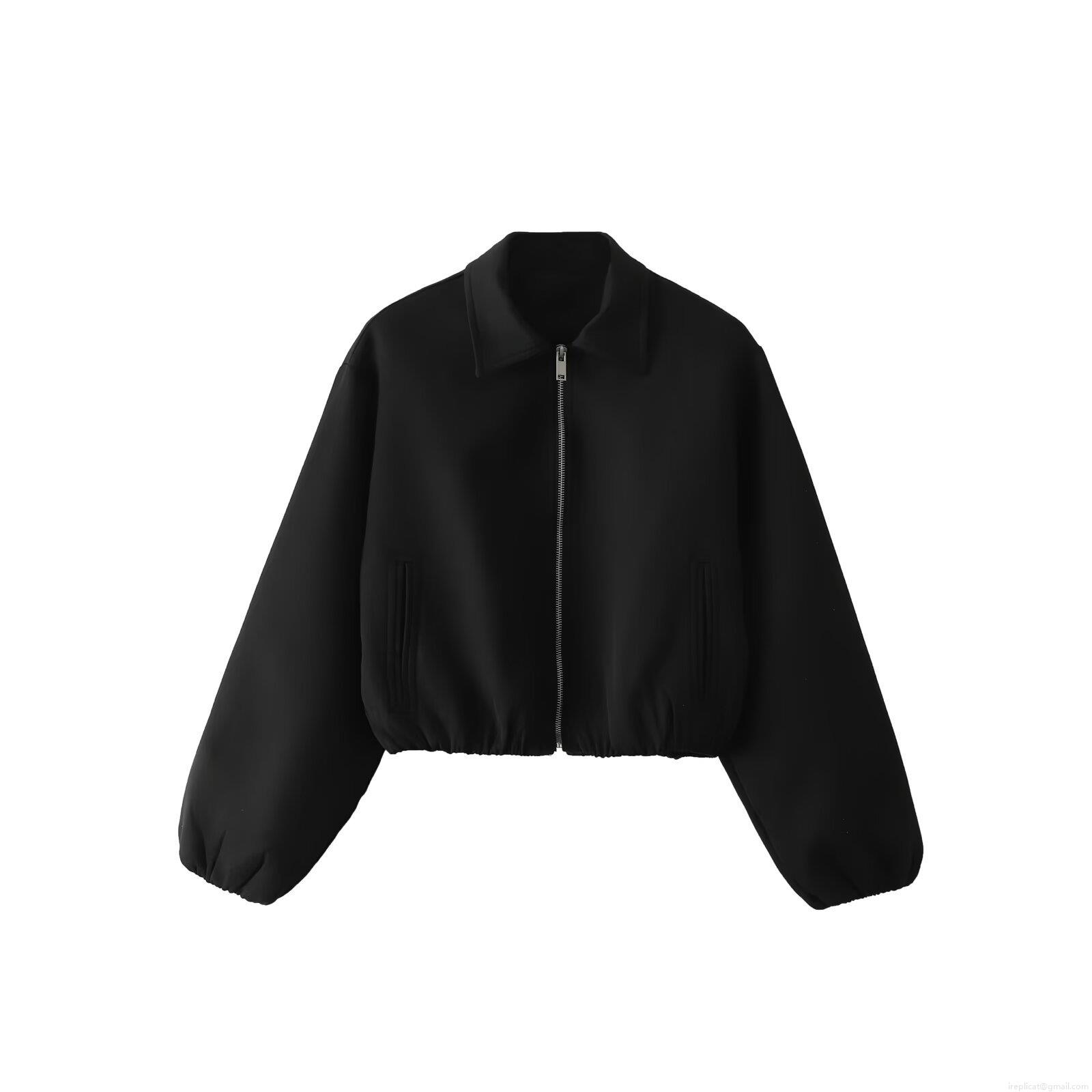 Women's Fashion Polyester Puffed Jacket Solid Color Short Zipper Outerwear Casual Autumn Winter Long Sleeve Lapel Streetwear Coat