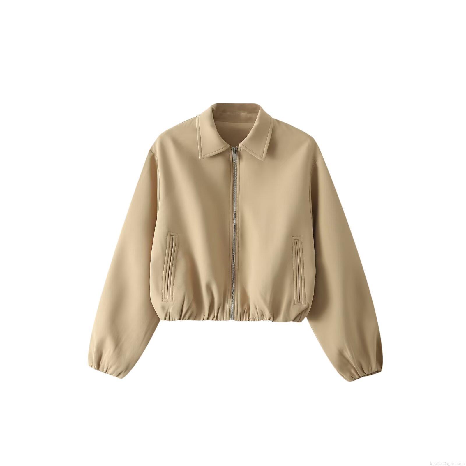 Women's Casual Polyester Woven Lapel Zipper Jacket Long Sleeve Khaki...