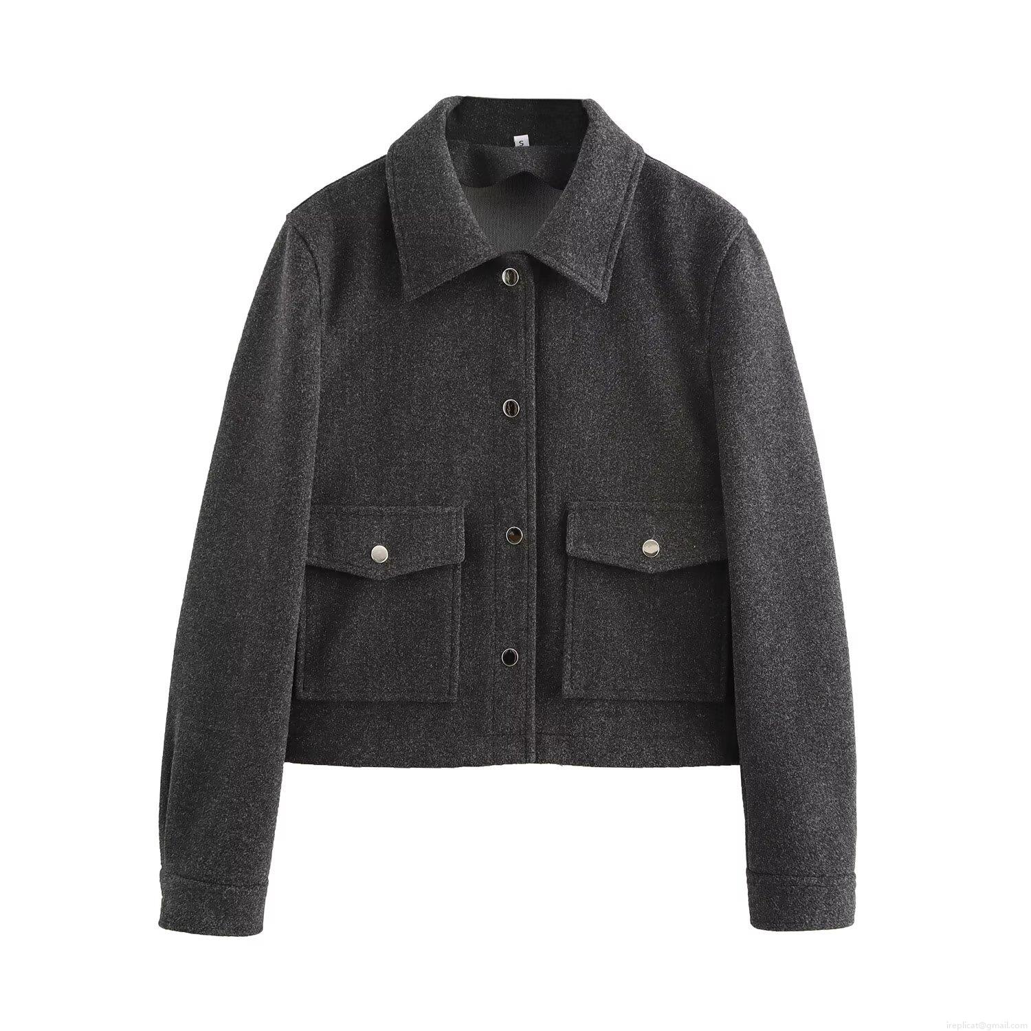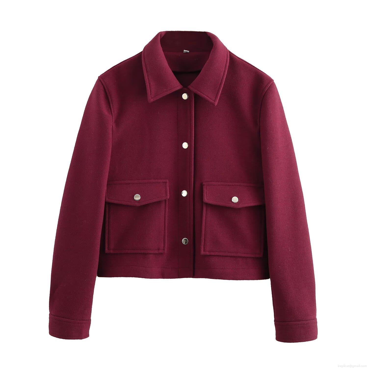 Women's Fashion Polyester Woolen Texture Jacket Short Lapel Double Pocket Coat Single Breasted Long Sleeve Outerwear For Casual Party Streetwear Lady