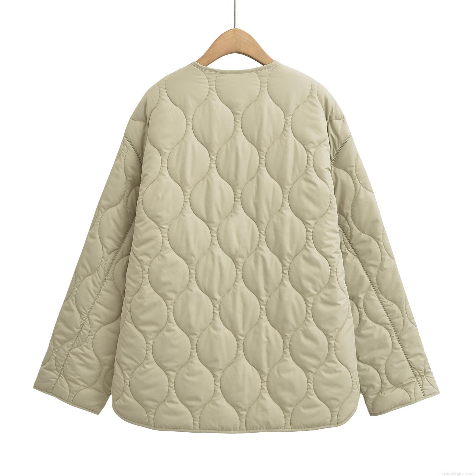 Women's Fashion Quilted Padded Jacket Round Neck Loose Zipper Outerwear Polyester Cotton Filling Casual Streetwear Winter Coat With Pockets