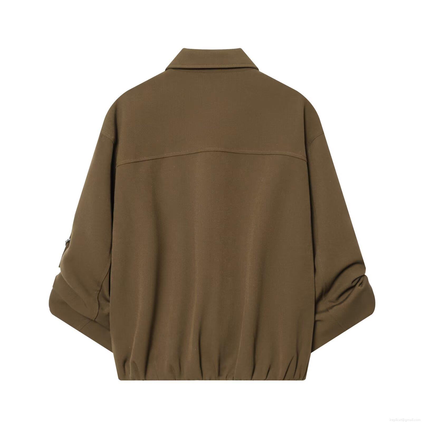 Women's Fashion Short Bomber Jacket Solid Color Casual Workwear Coat With Metal Ring Epaulettes Twill Polyester Outerwear For Spring Winter