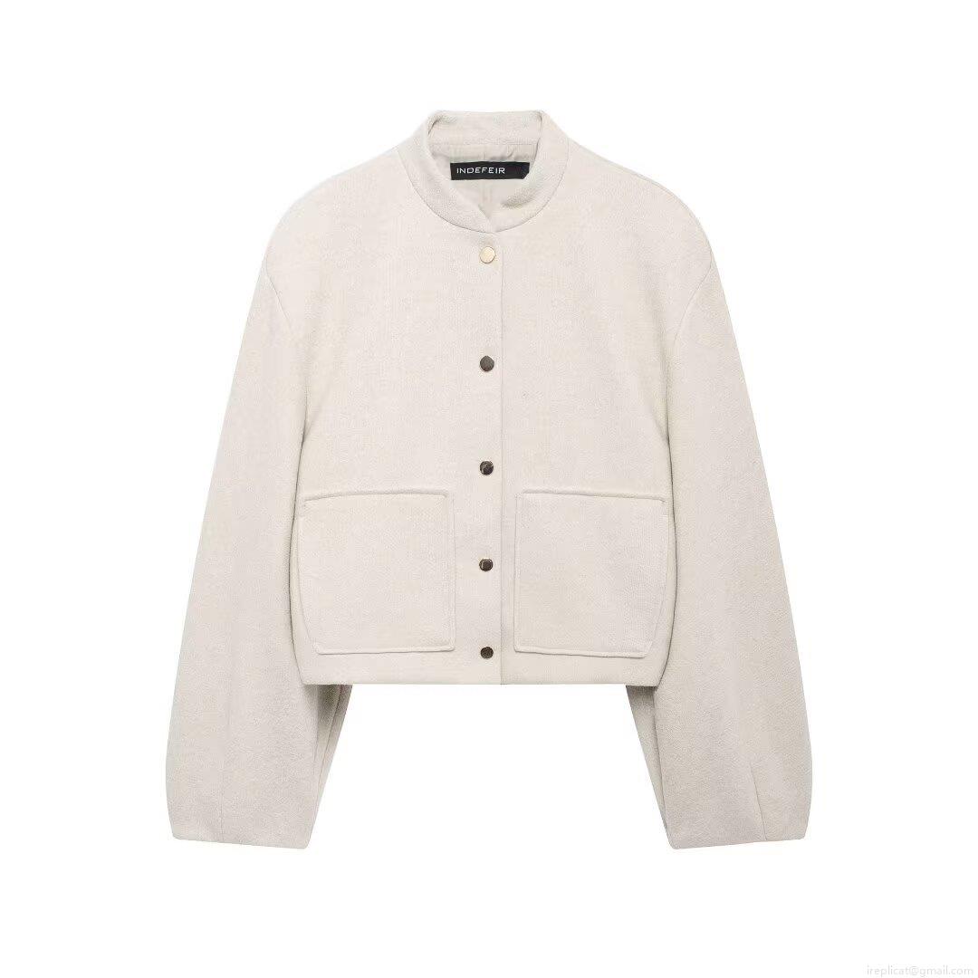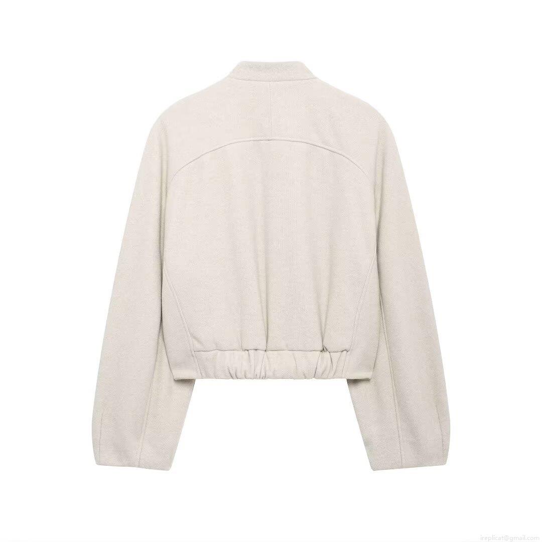 Women's Elegant Cream Woolen Felt Bomber Jacket Gold Button Short...