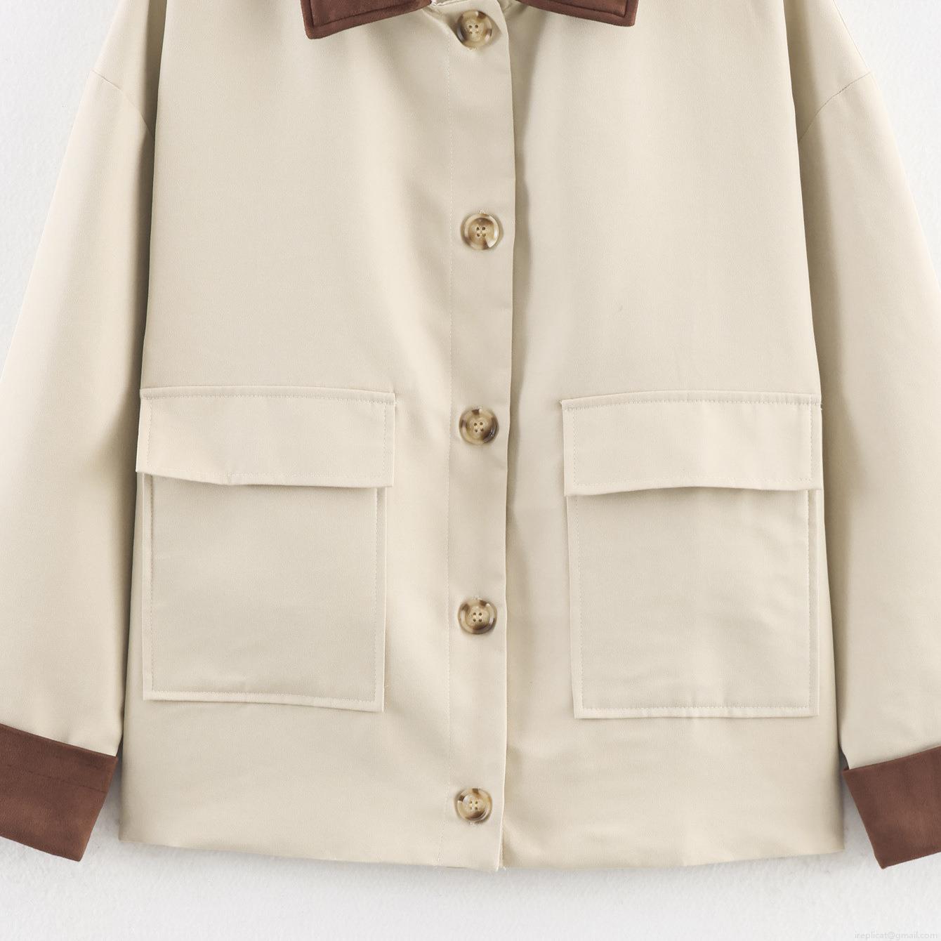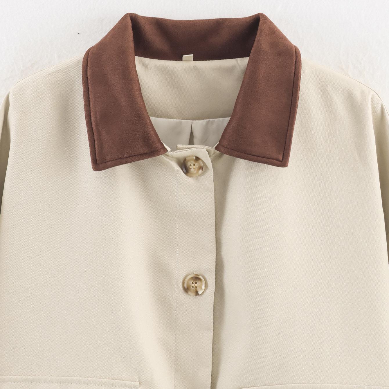 Women's Fashion Short Jacket Casual Color Block Lapel Windbreaker Coat Faux Suede Trim Single Breasted Outerwear With Large Pockets For Spring Autumn