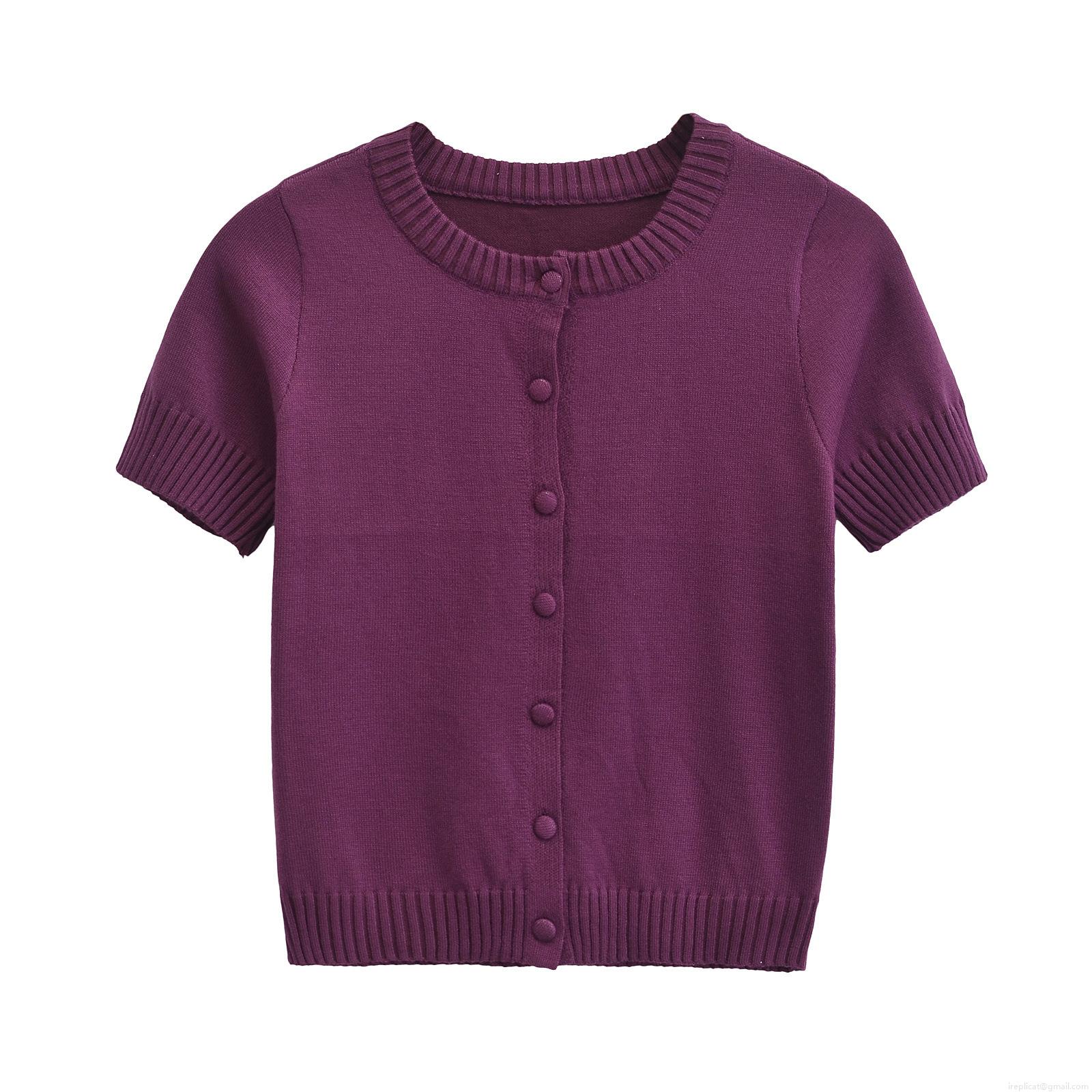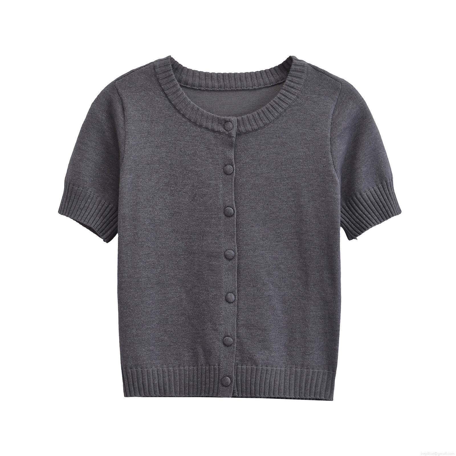 Women's Fashion Short Sleeve Knit Cardigan Button Down Round Neck Solid Color Polyester Knit Sweater Top Streetwear Outwear