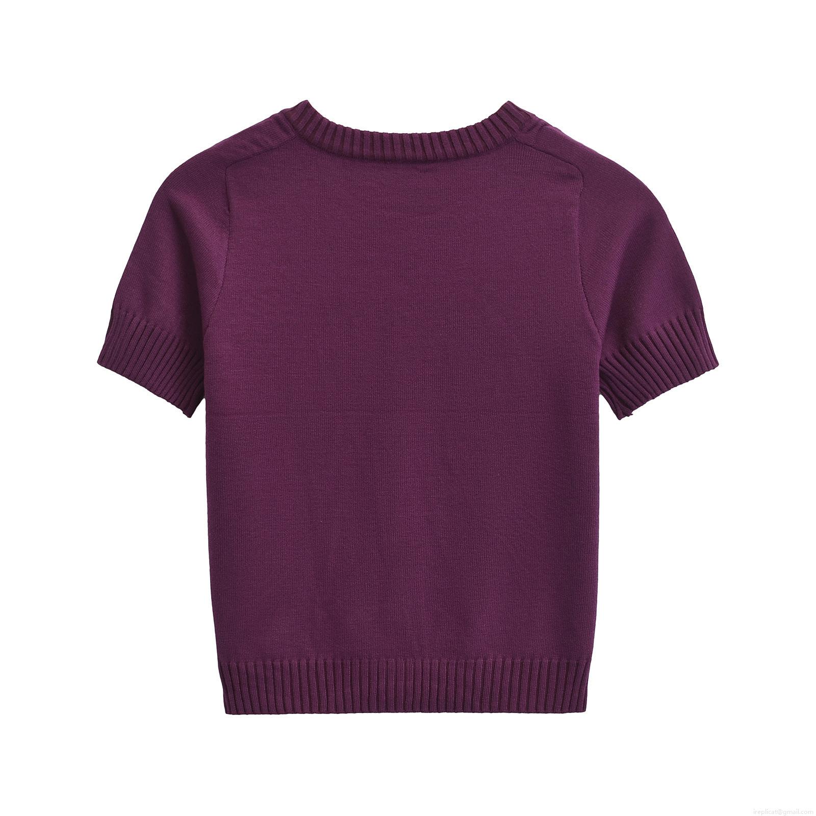 Sweet Bowknot Decorated Women's Short Sleeve Knit Sweater Polyester...