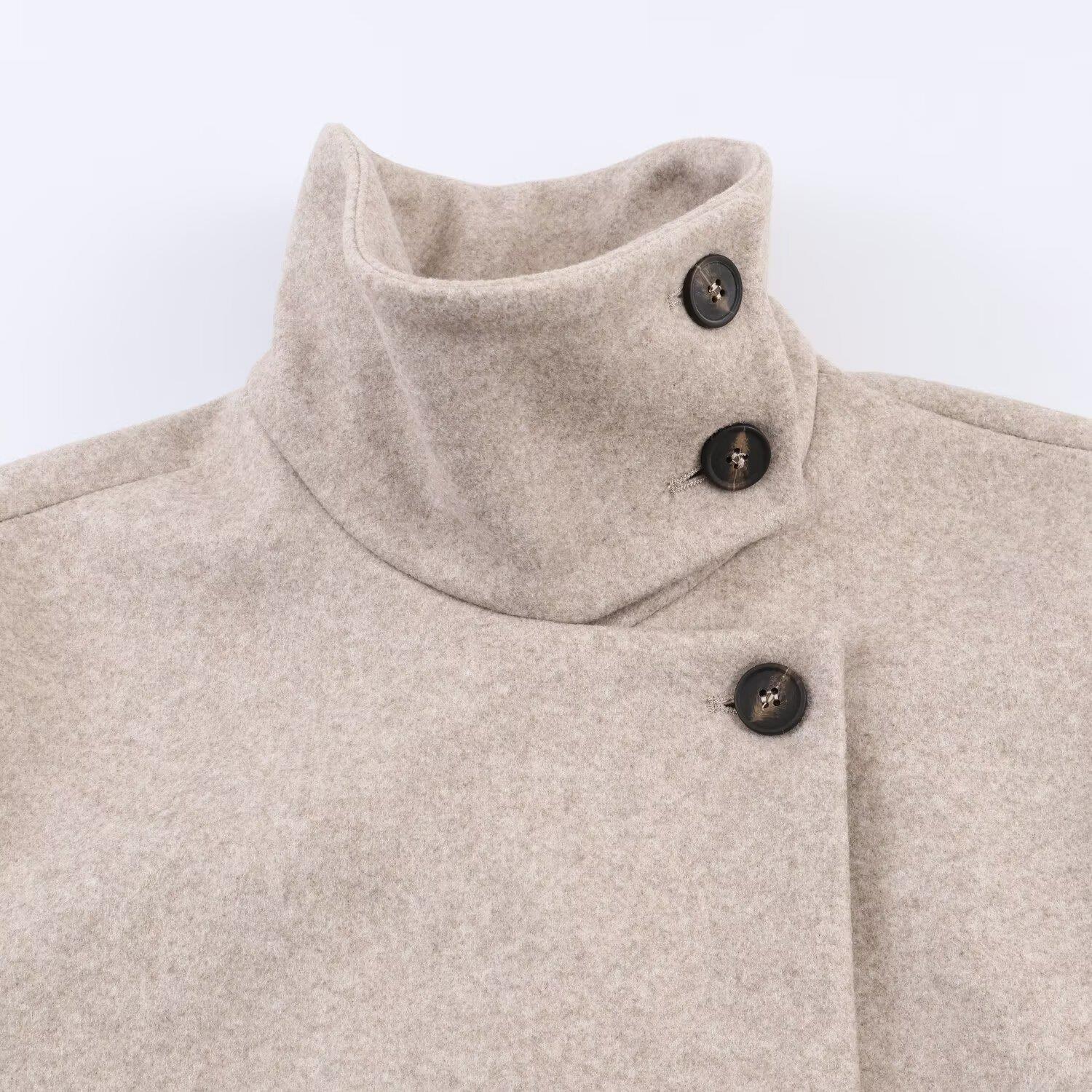 Women's Fashion Short Woolen Coat Winter Stand Collar Asymmetrical Single-Breasted Jacket Long Sleeve Thick Outerwear With Pockets For Ladies Casual Daily Wear