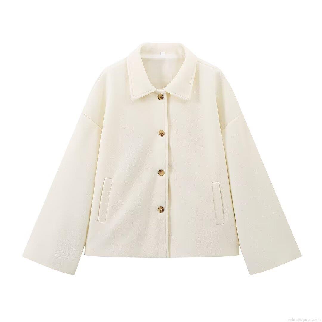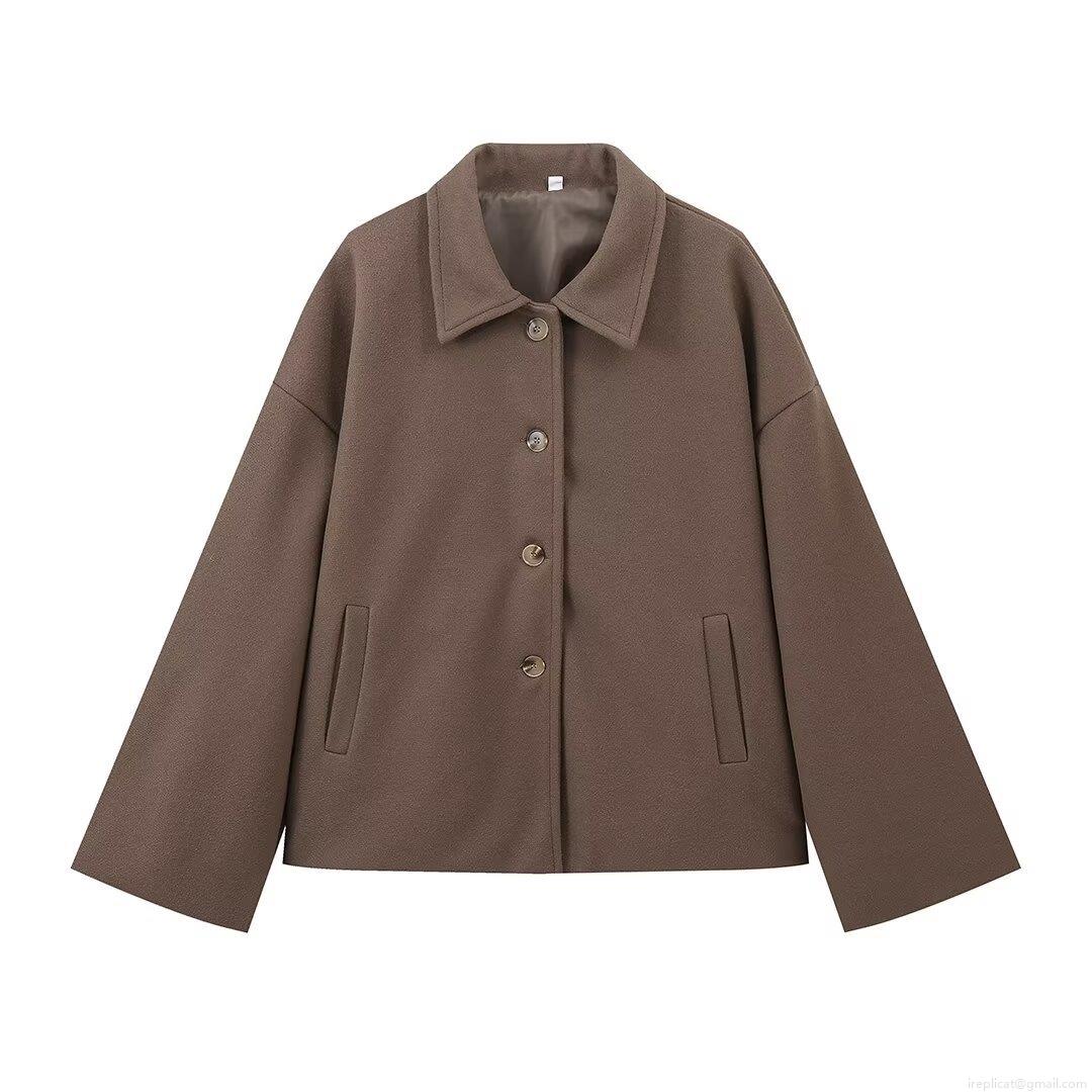 Women's Fashion Short Woolen Jacket Autumn Winter Lapel Long Sleeve Single Breasted Solid Color Polyester Coat For Ladies Casual Streetwear Outerwear