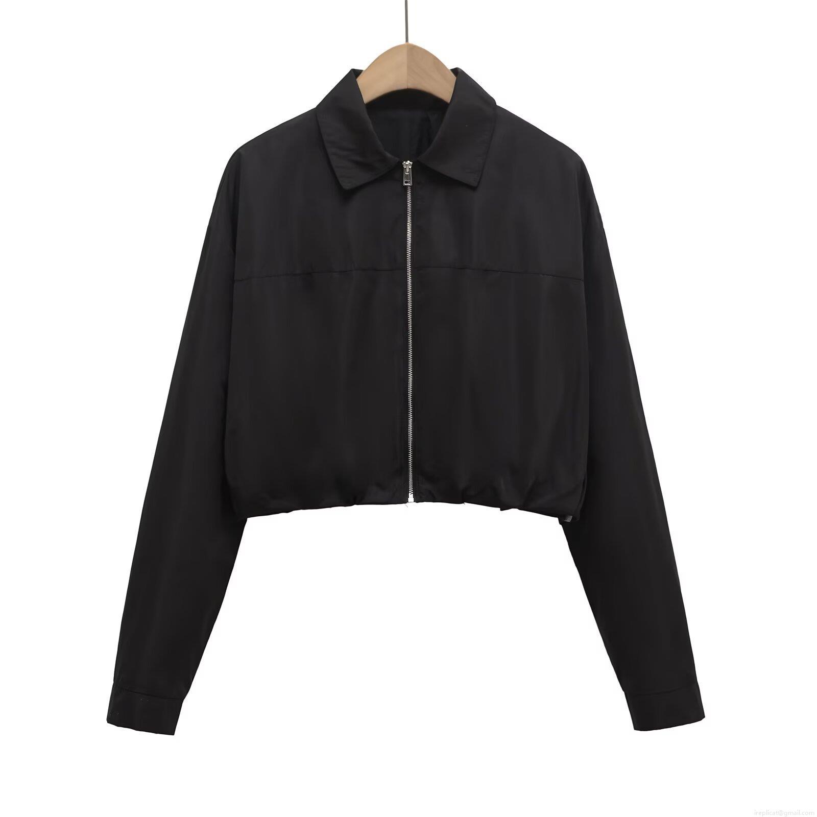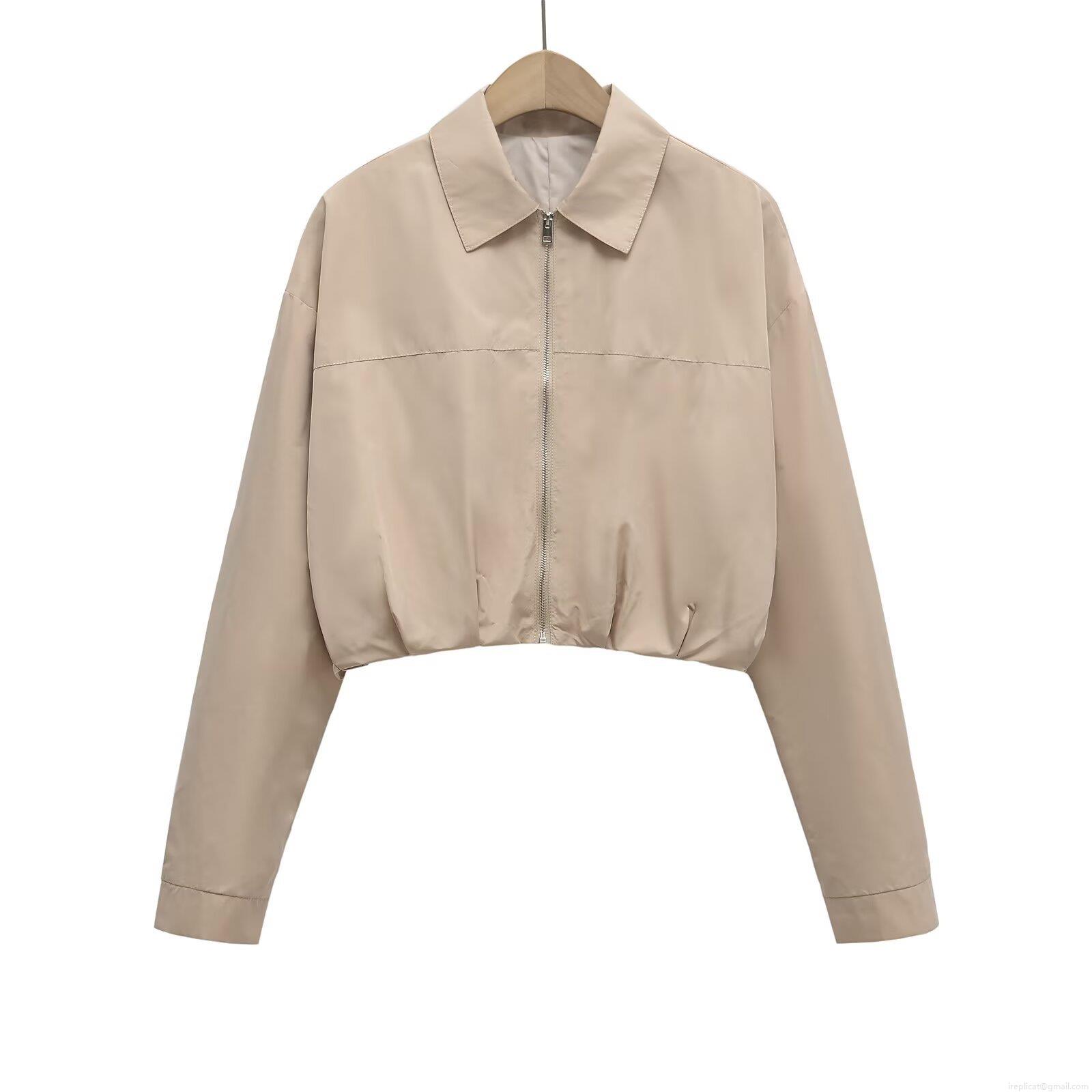 Women's Fashion Short Workwear Jacket Zip Up Long Sleeve Regenerated Cellulose Fiber Casual Loose Coat for Autumn Winter Women