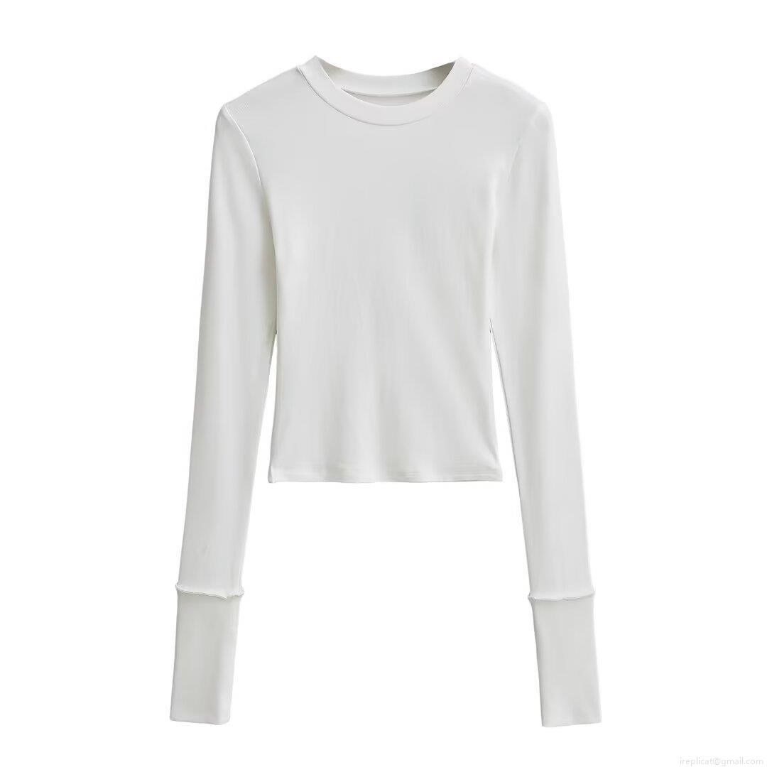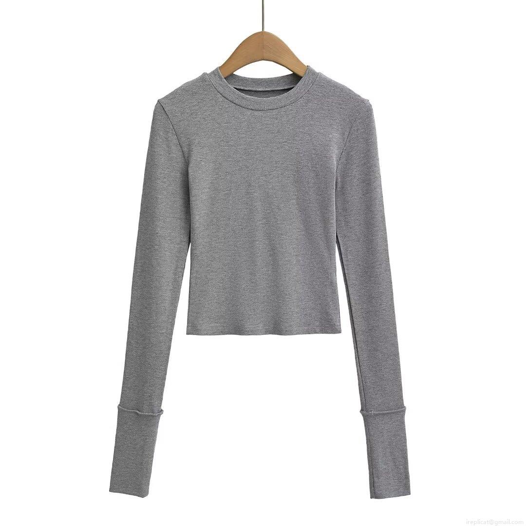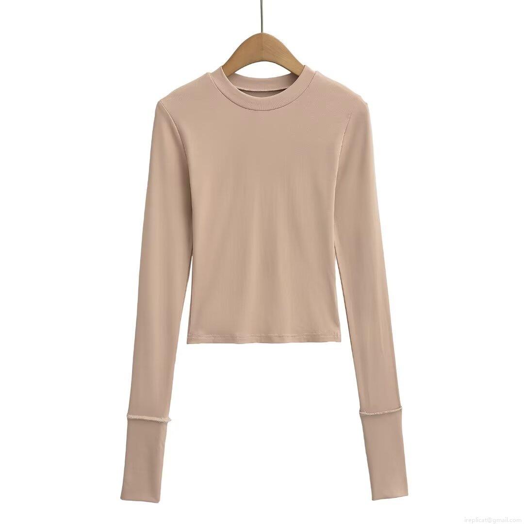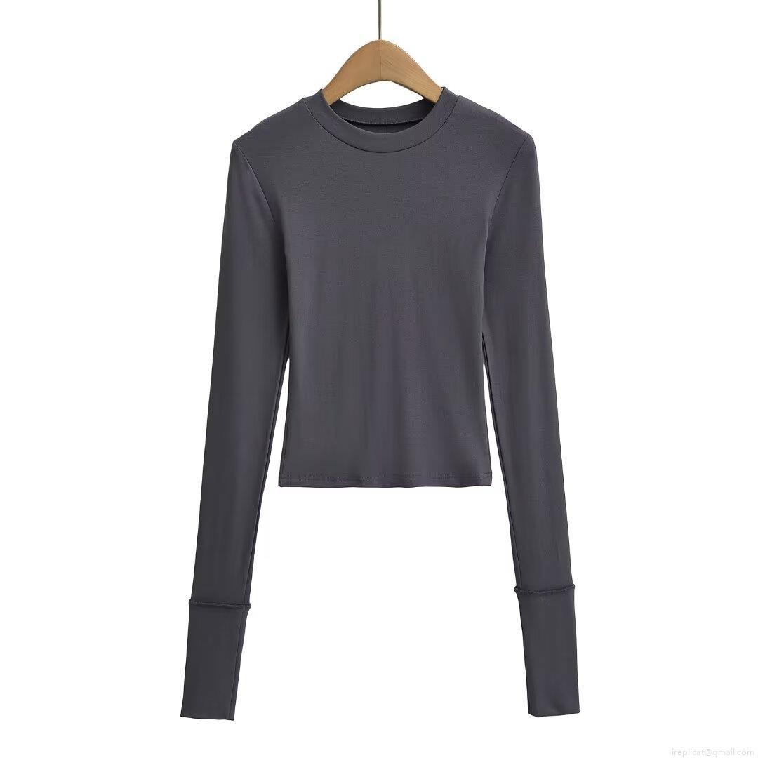 Women's Fashion Slim Fit Long Sleeve T-Shirt Winter Ribbed Knit Round Neck Pullover Base Layer Short Top Casual Daily Tee for Women