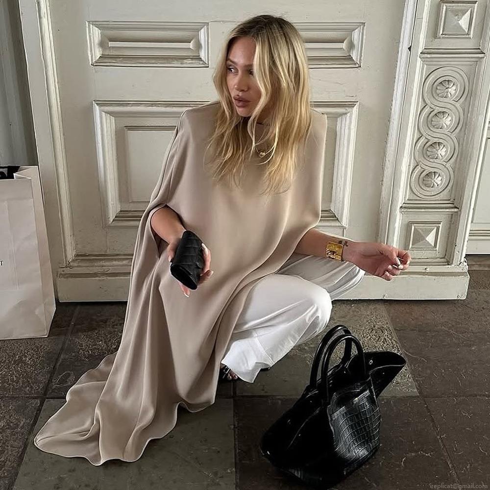 Minimalist Women Linen V-Neck Batwing Sleeve Top Loose Fit Poncho...