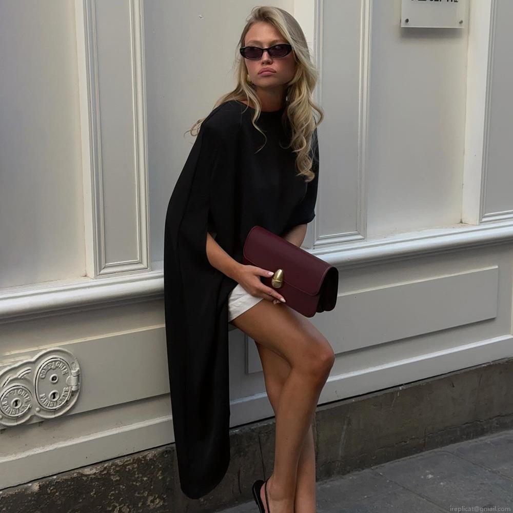 Women's Fashion Solid Color Batwing Sleeve Irregular Hem Longline T-Shirt Round Neck Casual Loose Pullover Top Streetwear Style For Women