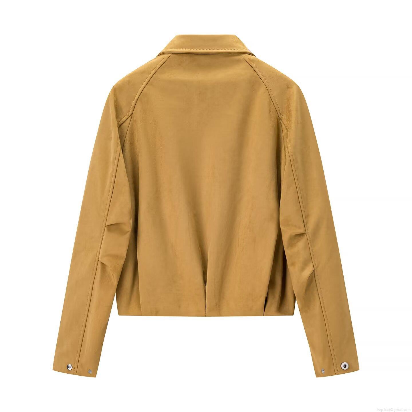 Women's Faux Suede Lapel Jacket Solid Color Long Sleeve Zipper Up...