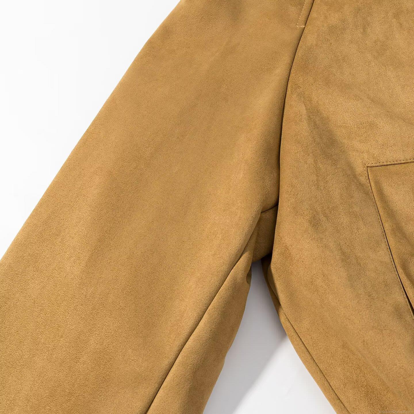 Women's Fashion Solid Color Suede Effect Bomber Jacket Casual Lapel Zip Up Long Sleeve Coat Streetwear Outwear For Women