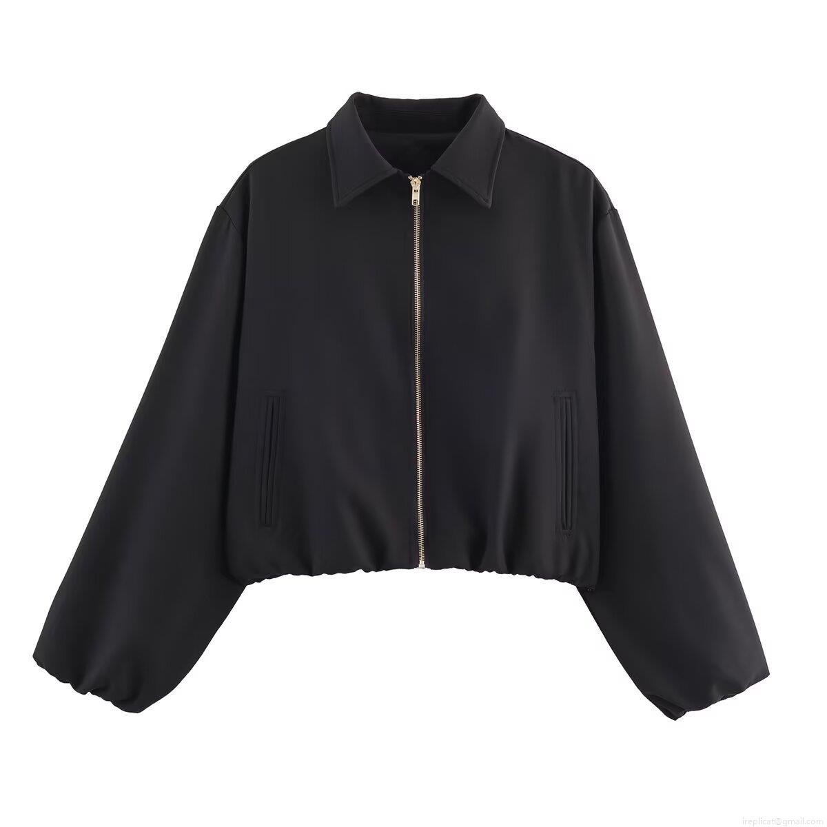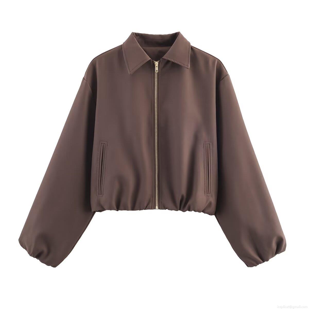 Women's Fashion Solid Color Suede Zipper Jacket Casual Loose Crop Coat With Lapel And Elastic Hem Streetwear For Women
