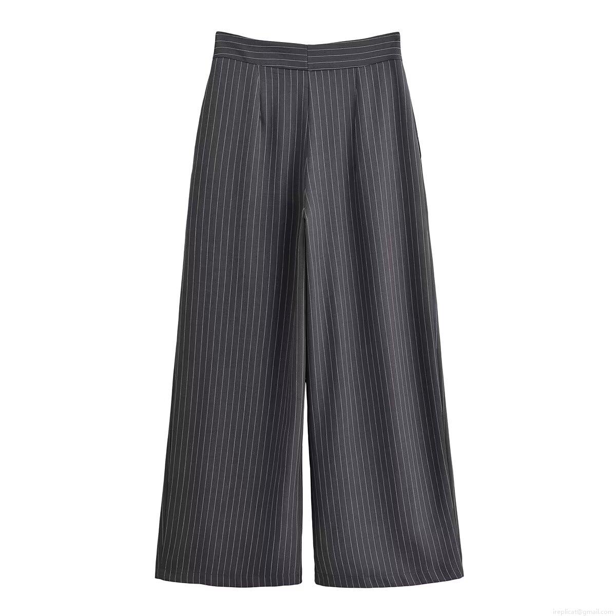 Vertical Stripes, White Pinstripes, Wide-leg Style, Pleated Design