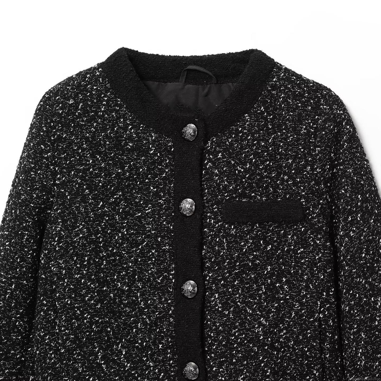 Women's Tweed Short Jacket Elegant Round Neck Long Sleeve Coat With...