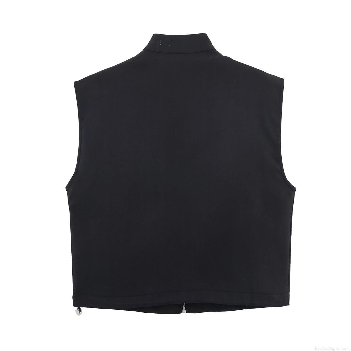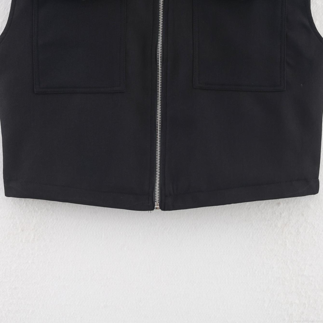 Women's Fashion Utility Vest Stand Collar Sleeveless Jacket Solid Color 100% Polyester Zipper Pockets Casual Outwear Basic Minimalist Style for Women