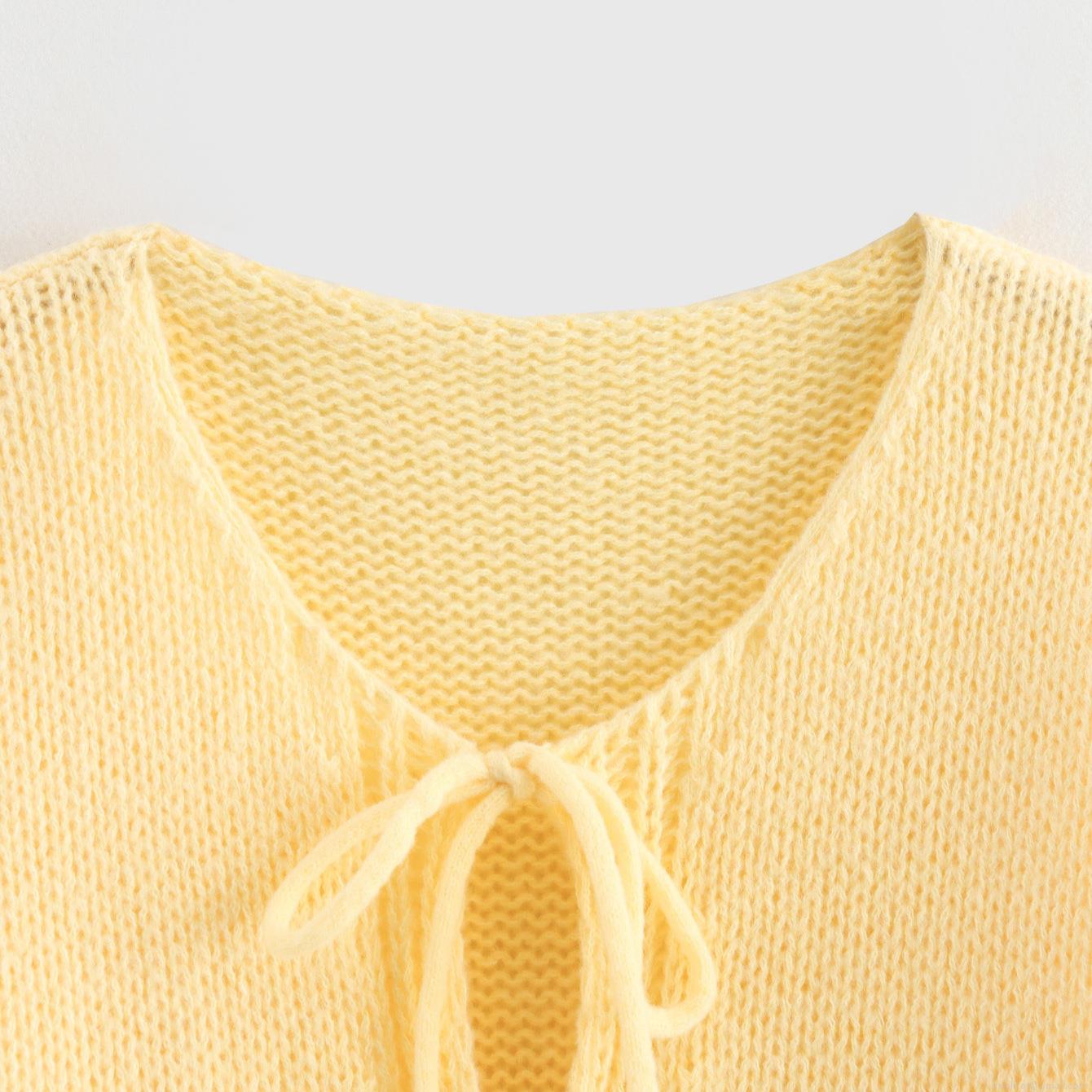 Women's Fashion V-Neck Knit Cardigan Solid Color Front Tie-Up Sweater With Ruffle Petal Sleeves Casual Loose Streetwear Knitwear For Women