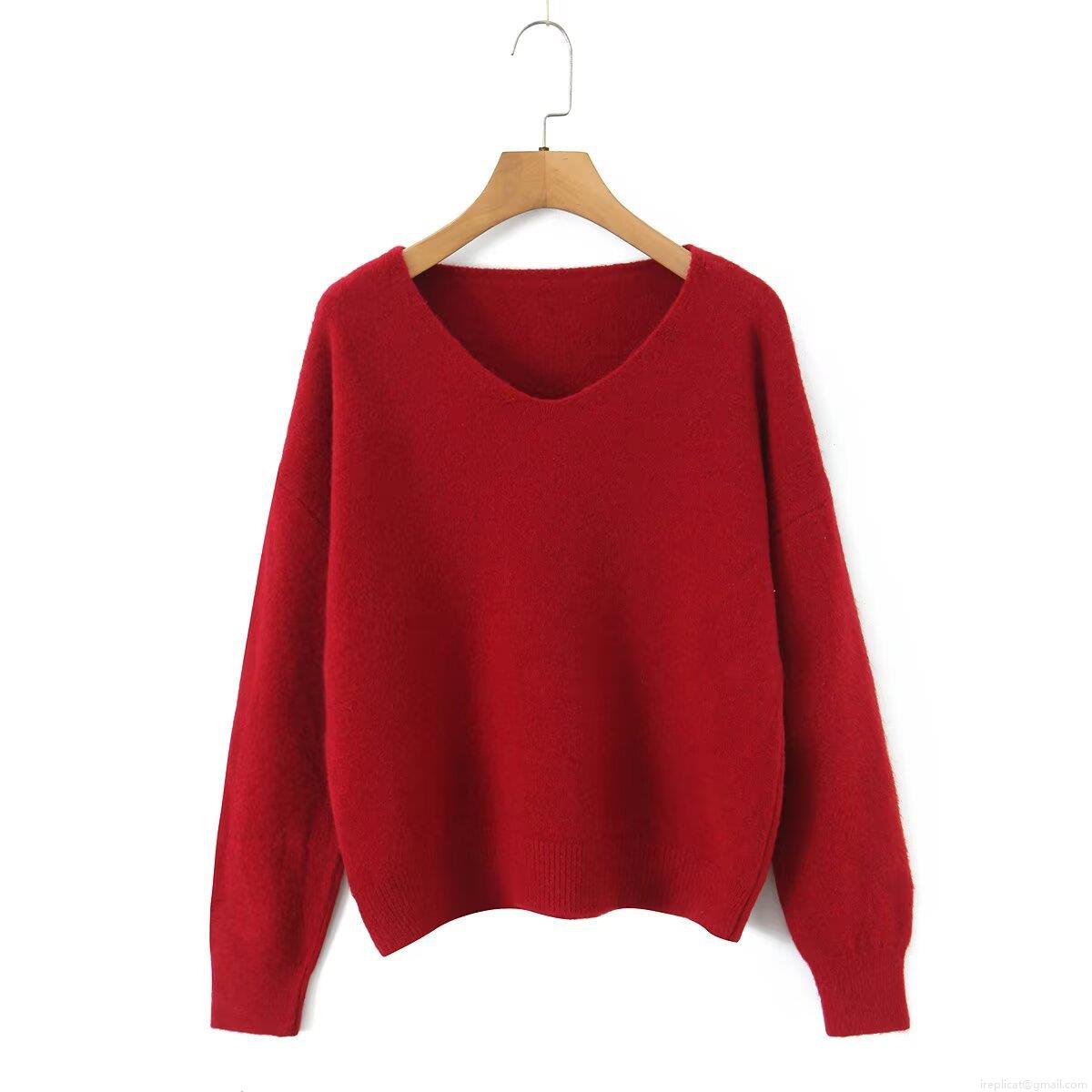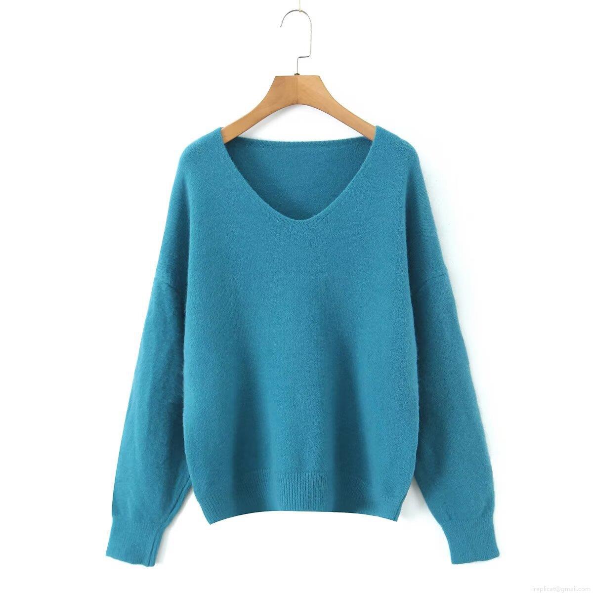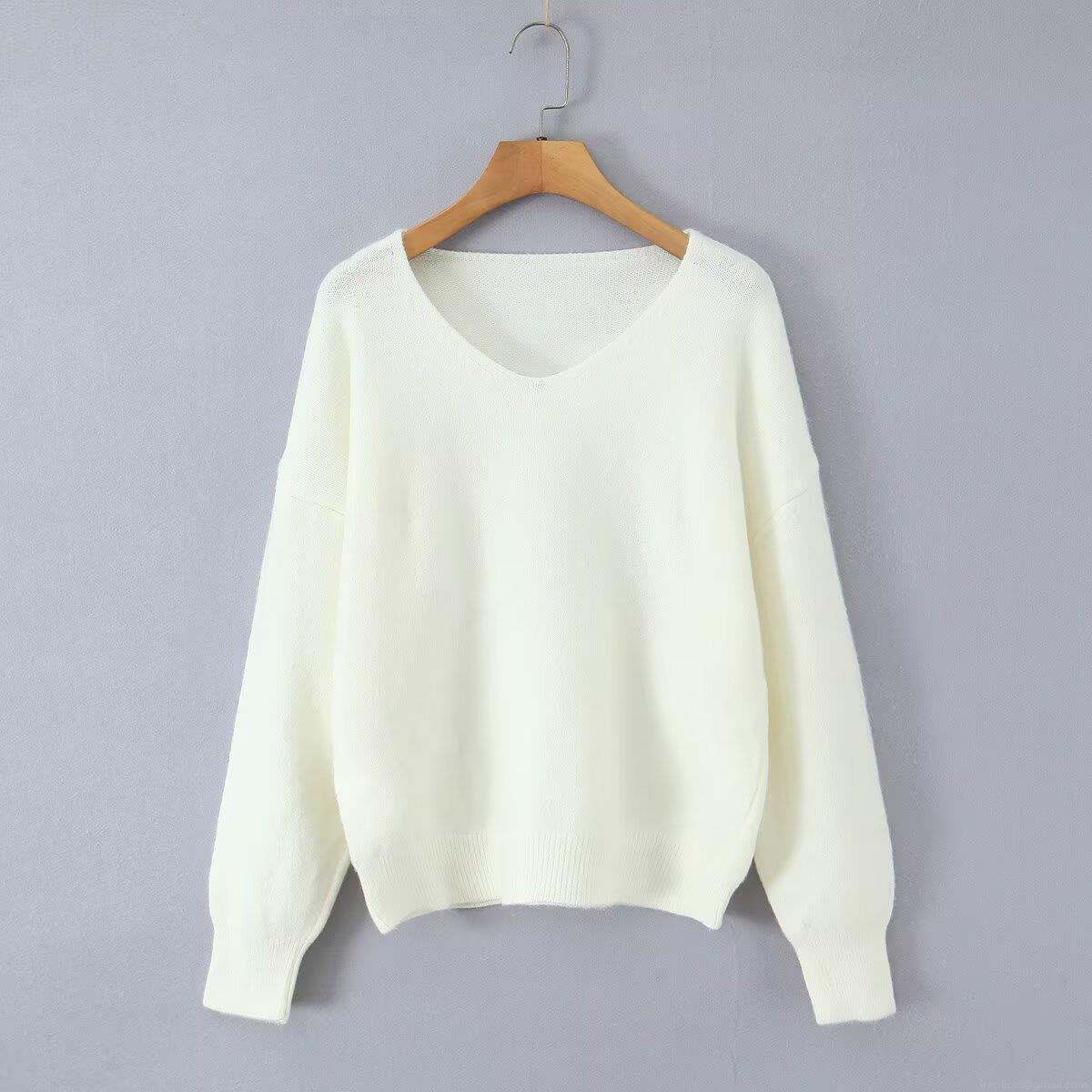 Women's Fashion V-Neck Long Sleeve Knit Sweater Loose Solid Color Pullover Casual Warm Knitwear Jumper For Women