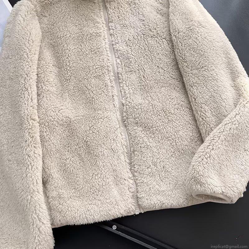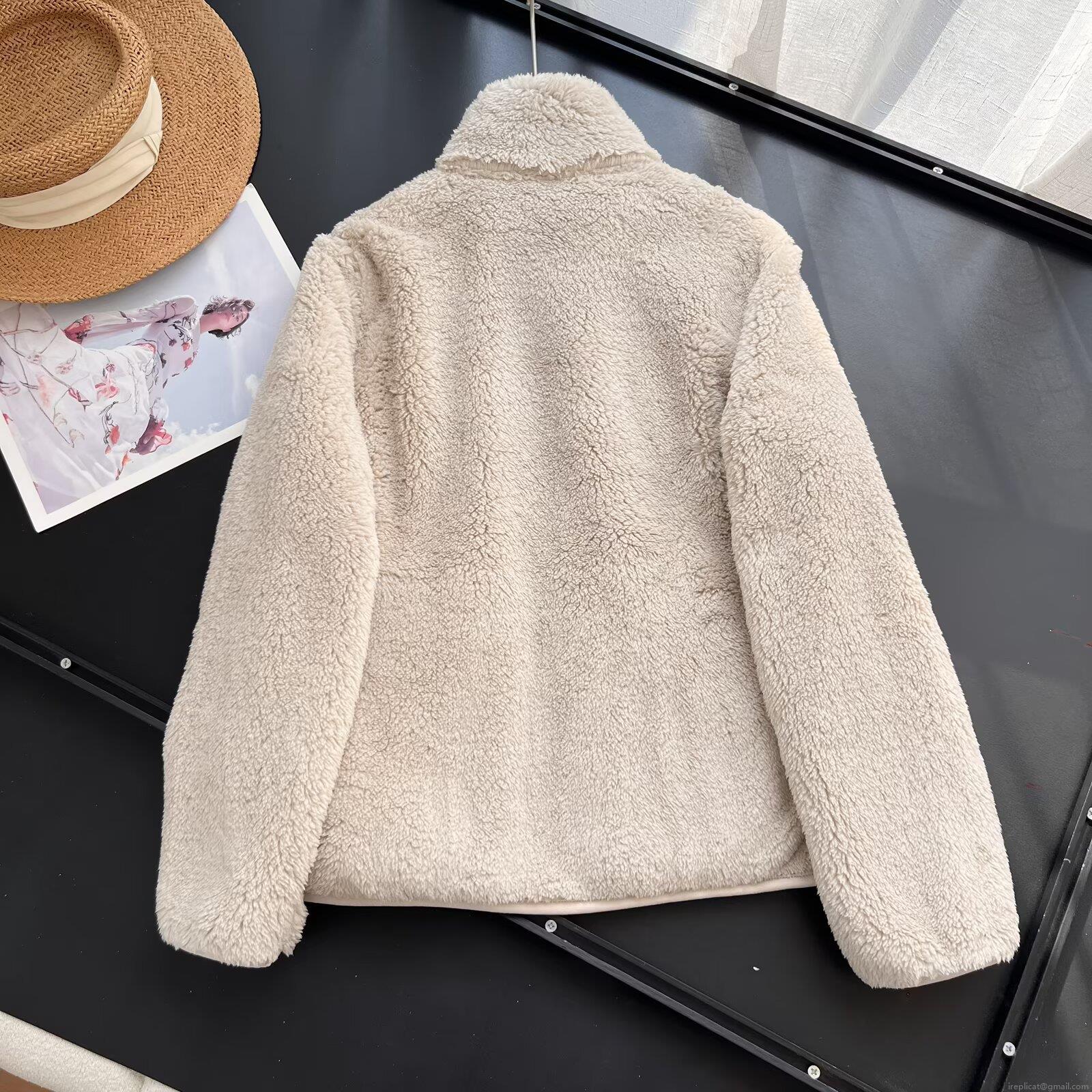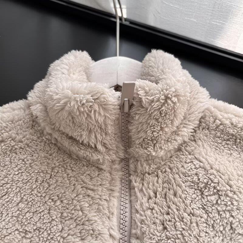 Solid Color, Pocket, Zipper, Stand-up Collar, Lamb Wool Texture