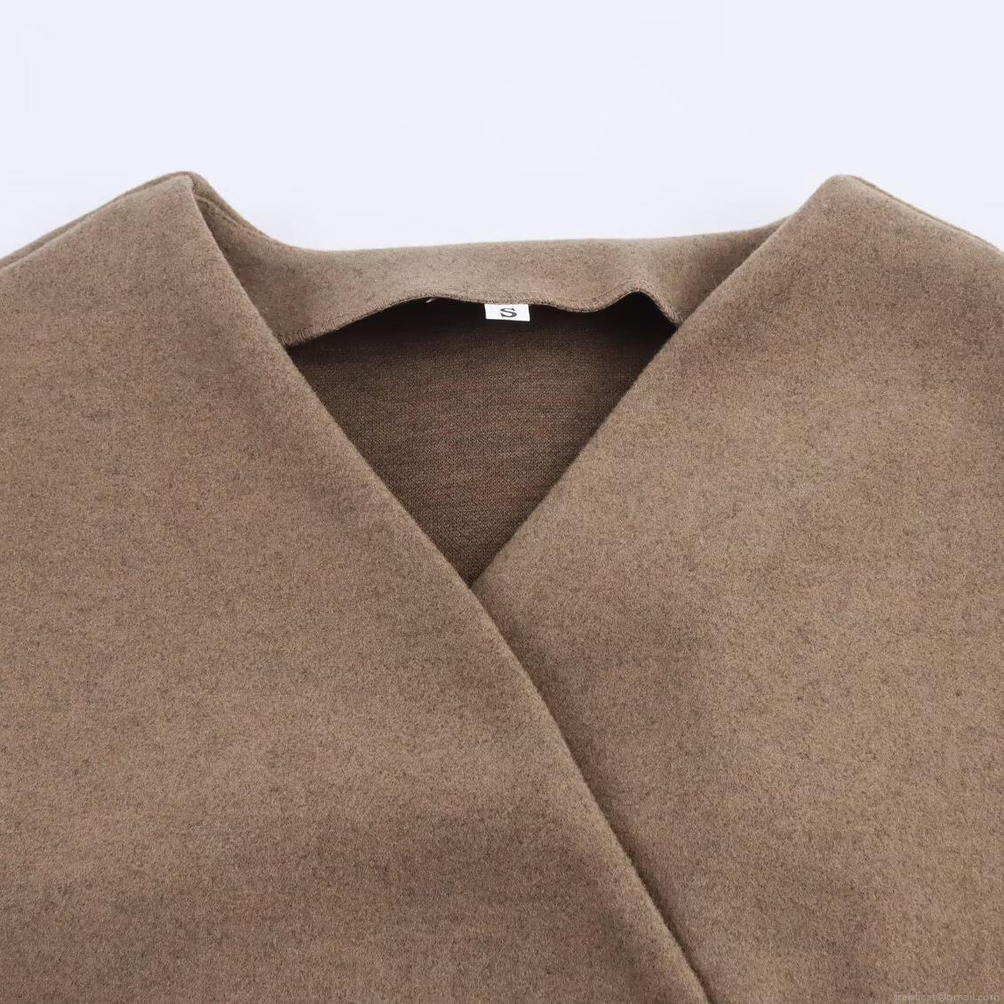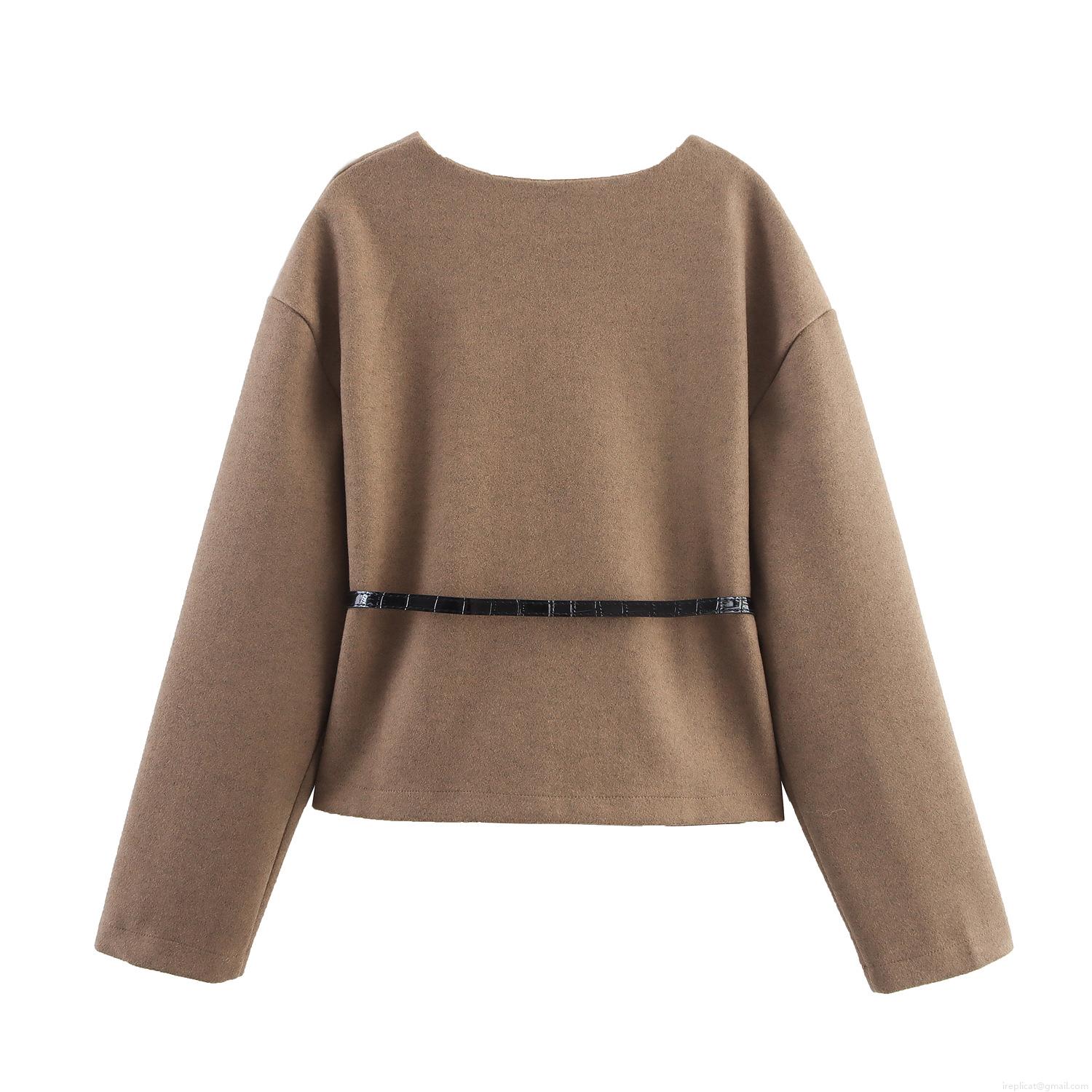 Women's Fashion Woolen Short Jacket With Belt Lapel Long Sleeve Camel Casual Outerwear Elegant Fall Winter Coat For Women Daily Wear