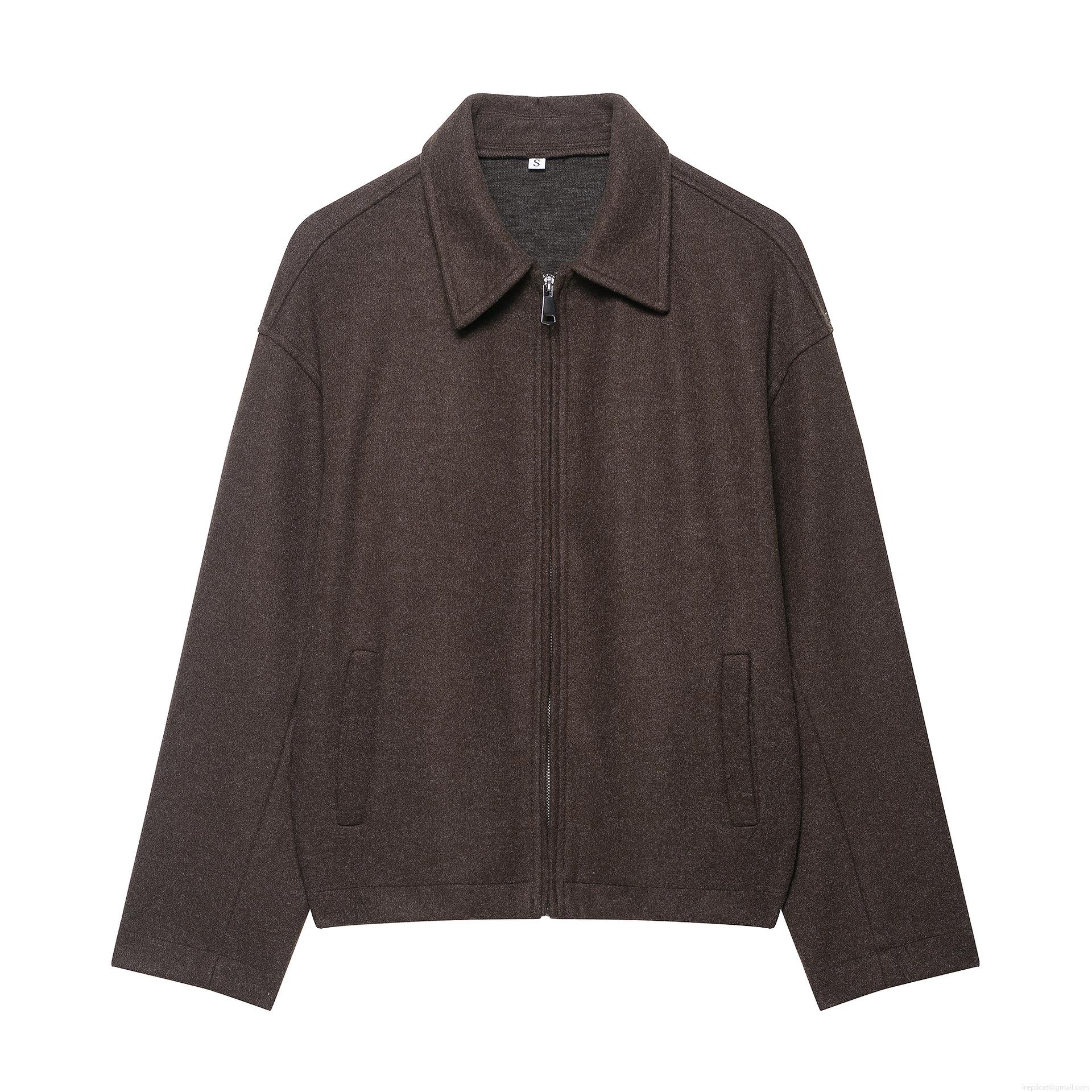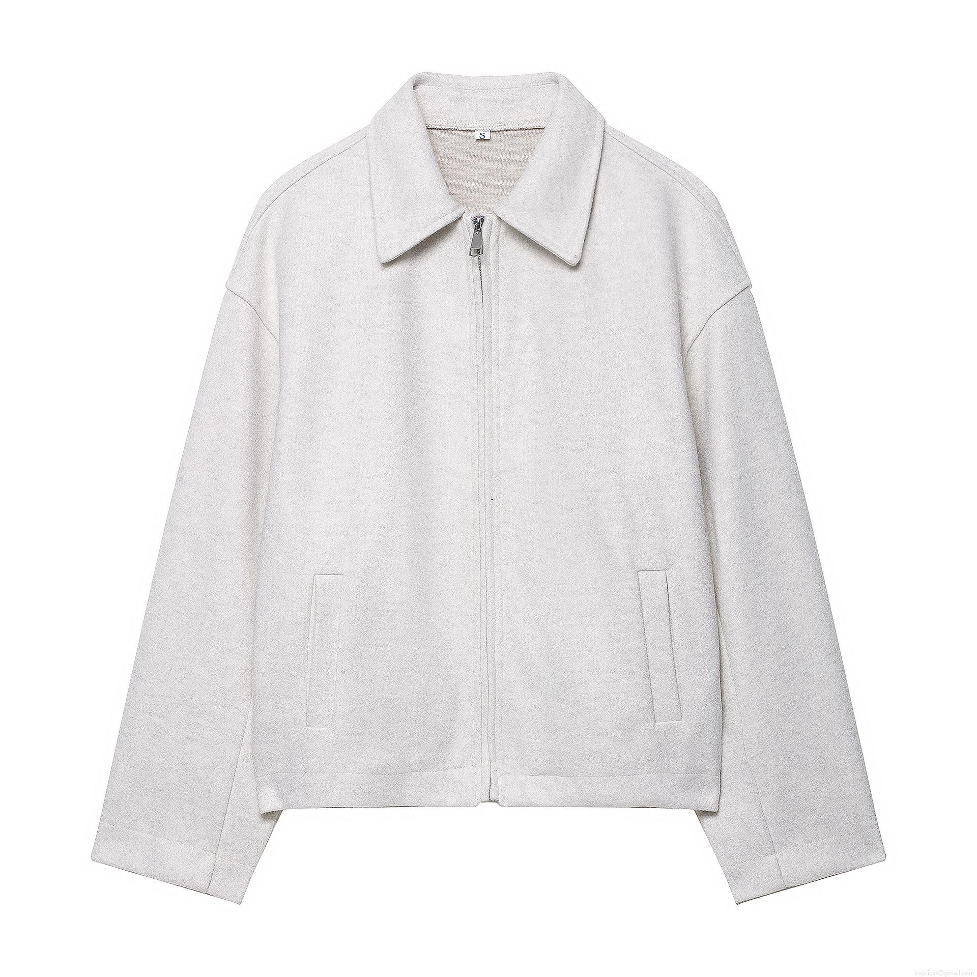 Women's Fashion Woolen Texture Lapel Jacket Loose Zip Up Long Sleeve Casual Outerwear Streetwear Coat For Women Spring Fall