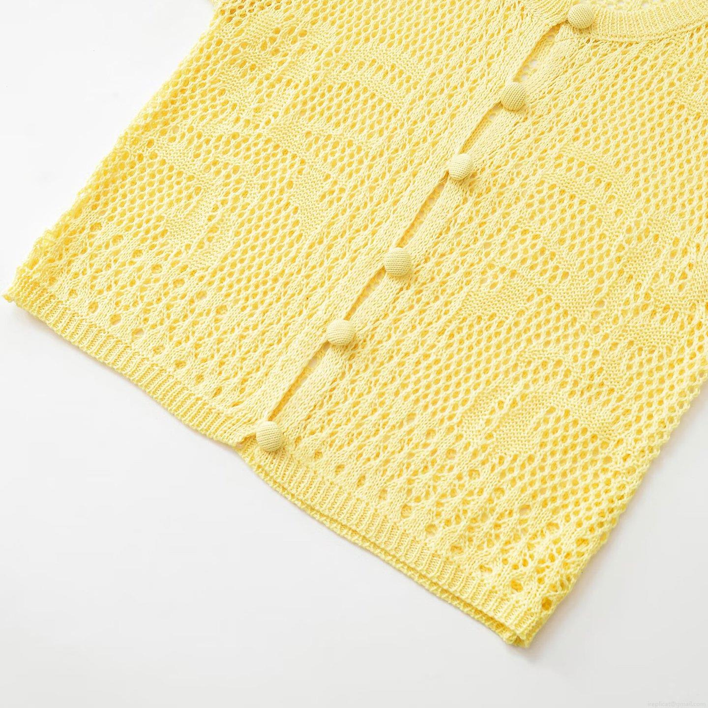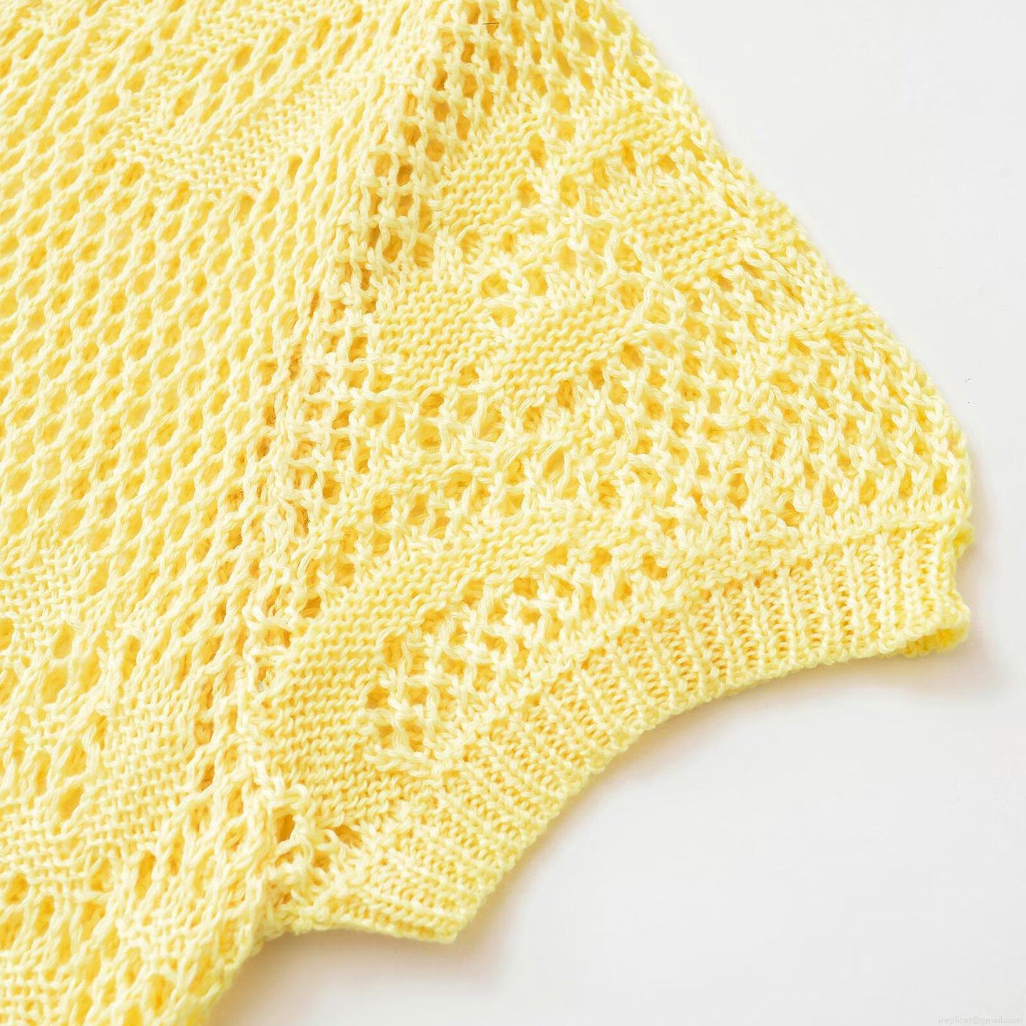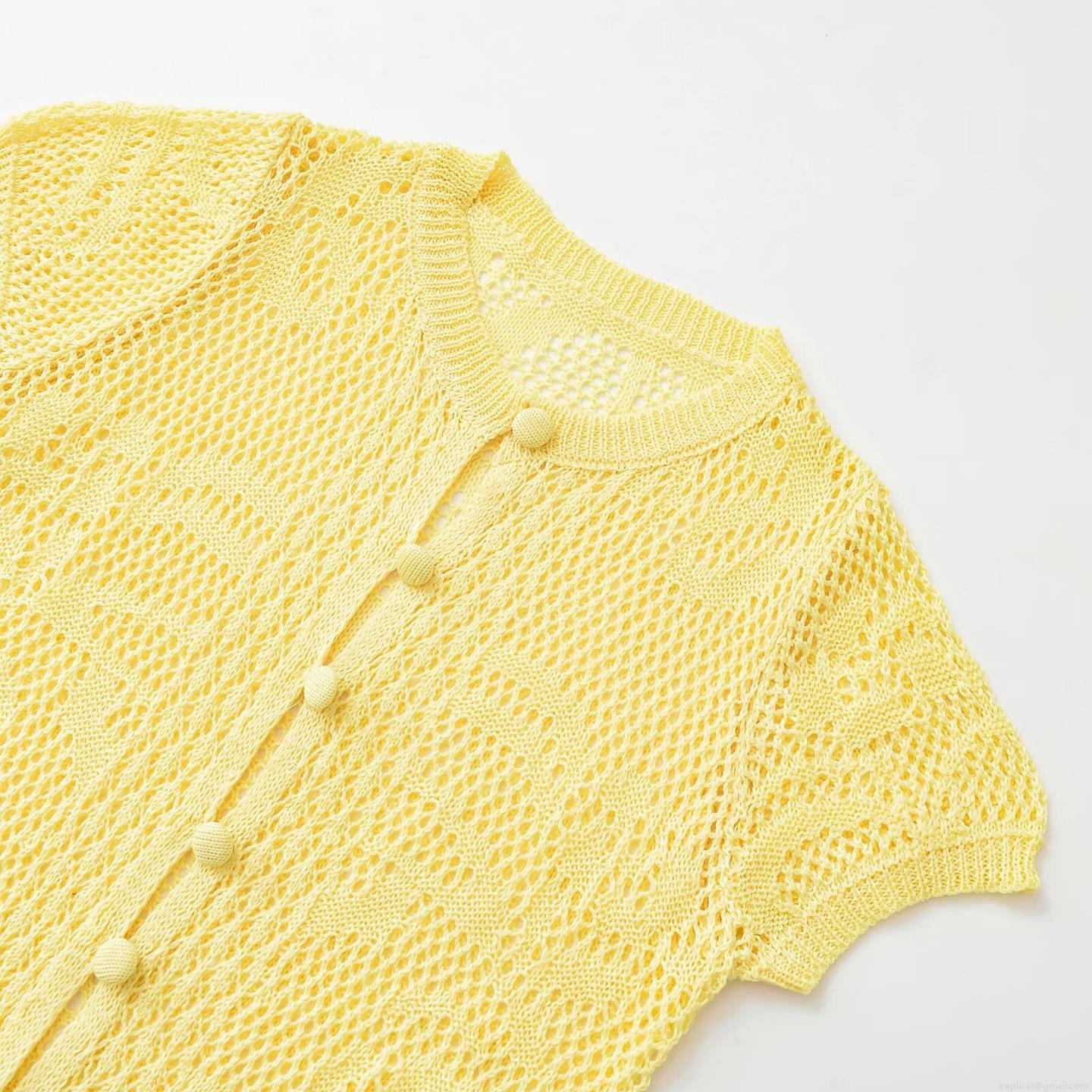 Women's Fashion Yellow Hollow Out Knitted Cardigan Round Neck Short Sleeve Crochet Top Polyester Spandex Sweet Knitwear For Summer Daily Dating