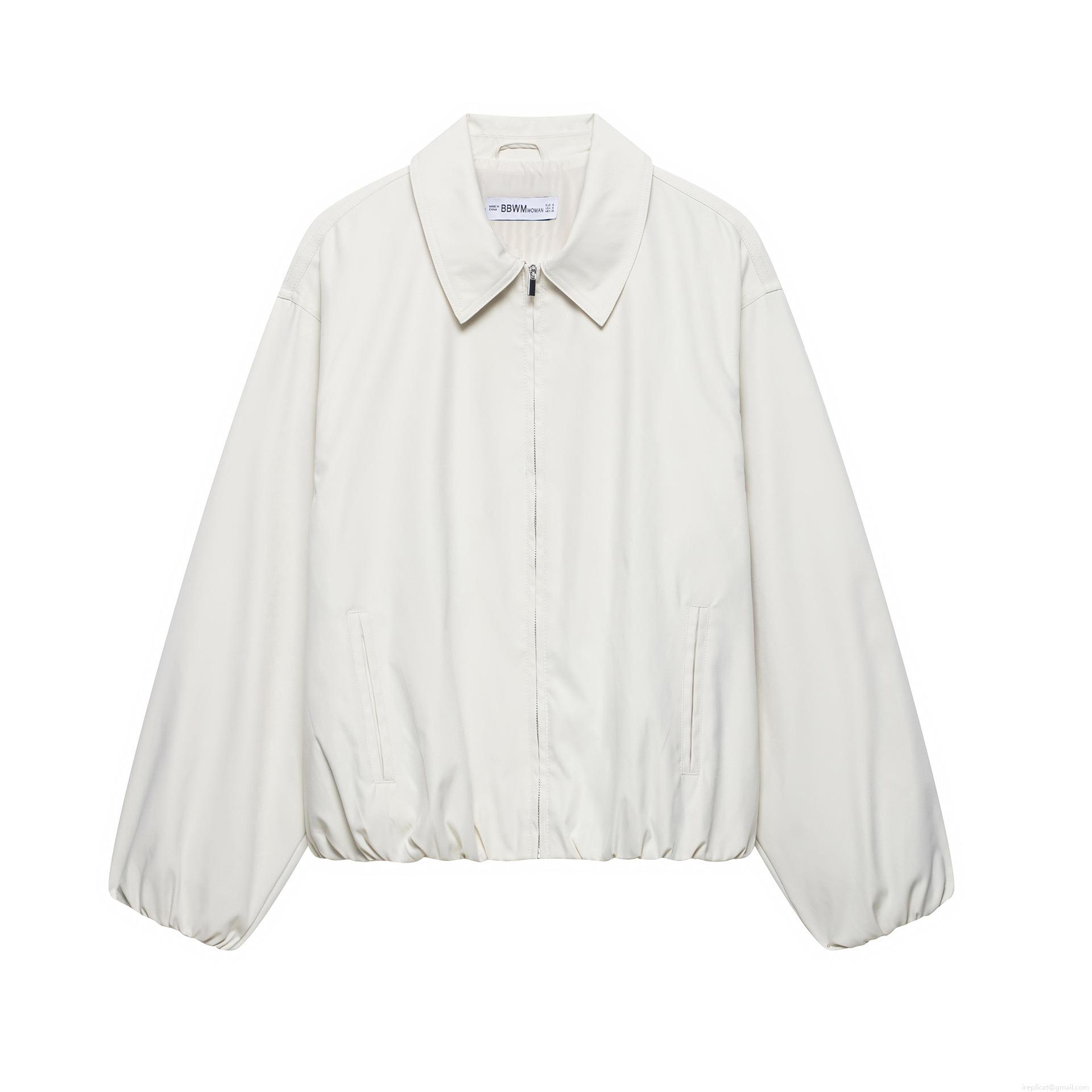 Women's Fashionable Bomber Jacket 100% Polyester Solid Color Lapel Full Zipper Outerwear Long Sleeve Short Coat With Elastic Hem For Ladies