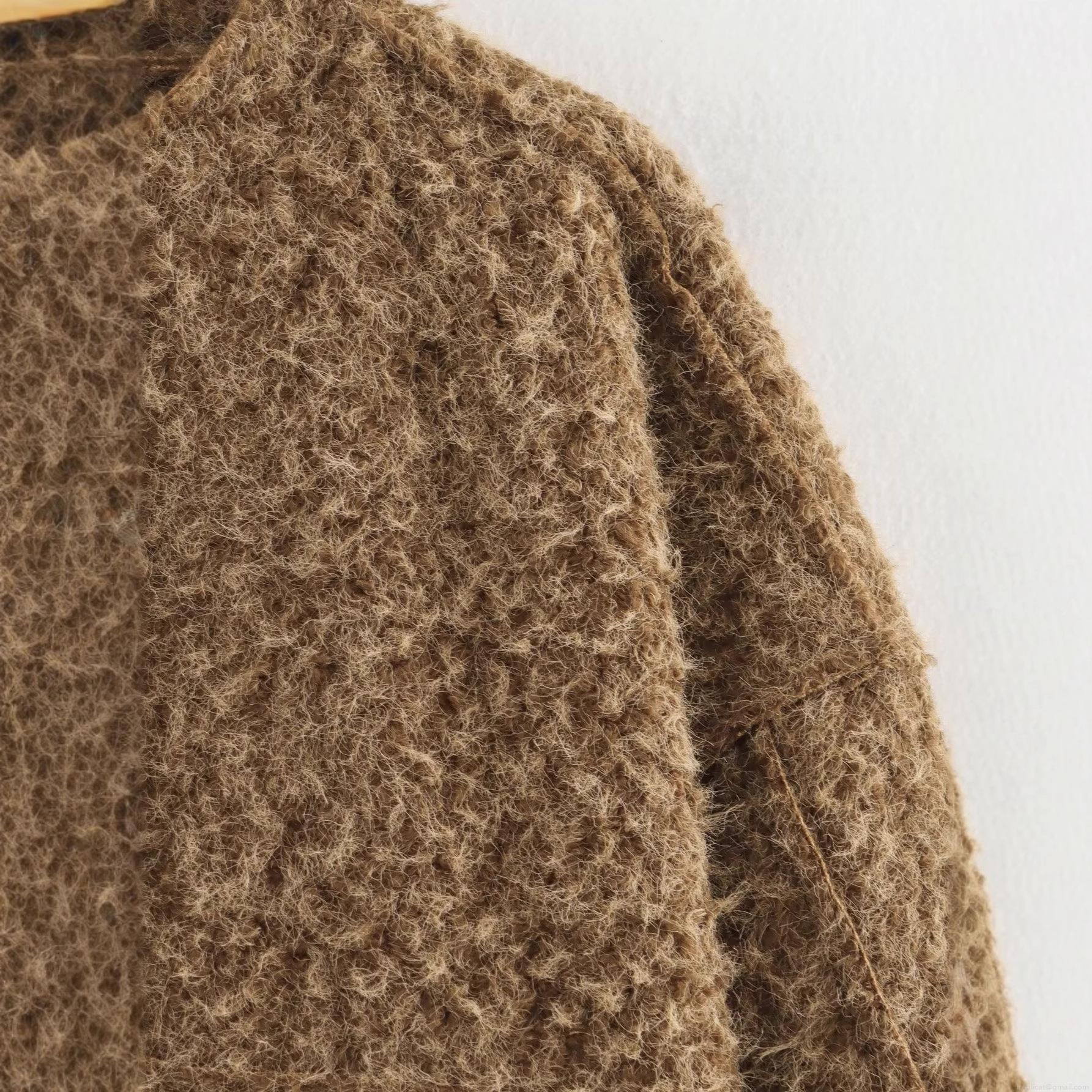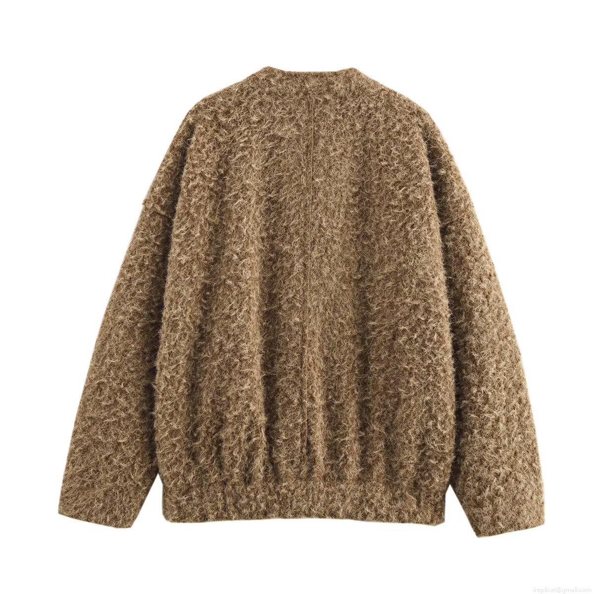 Women's Faux Fur Short Jacket Solid Round Neck Long Sleeve Plush Outerwear Elegant Casual Zipper Coat For Women