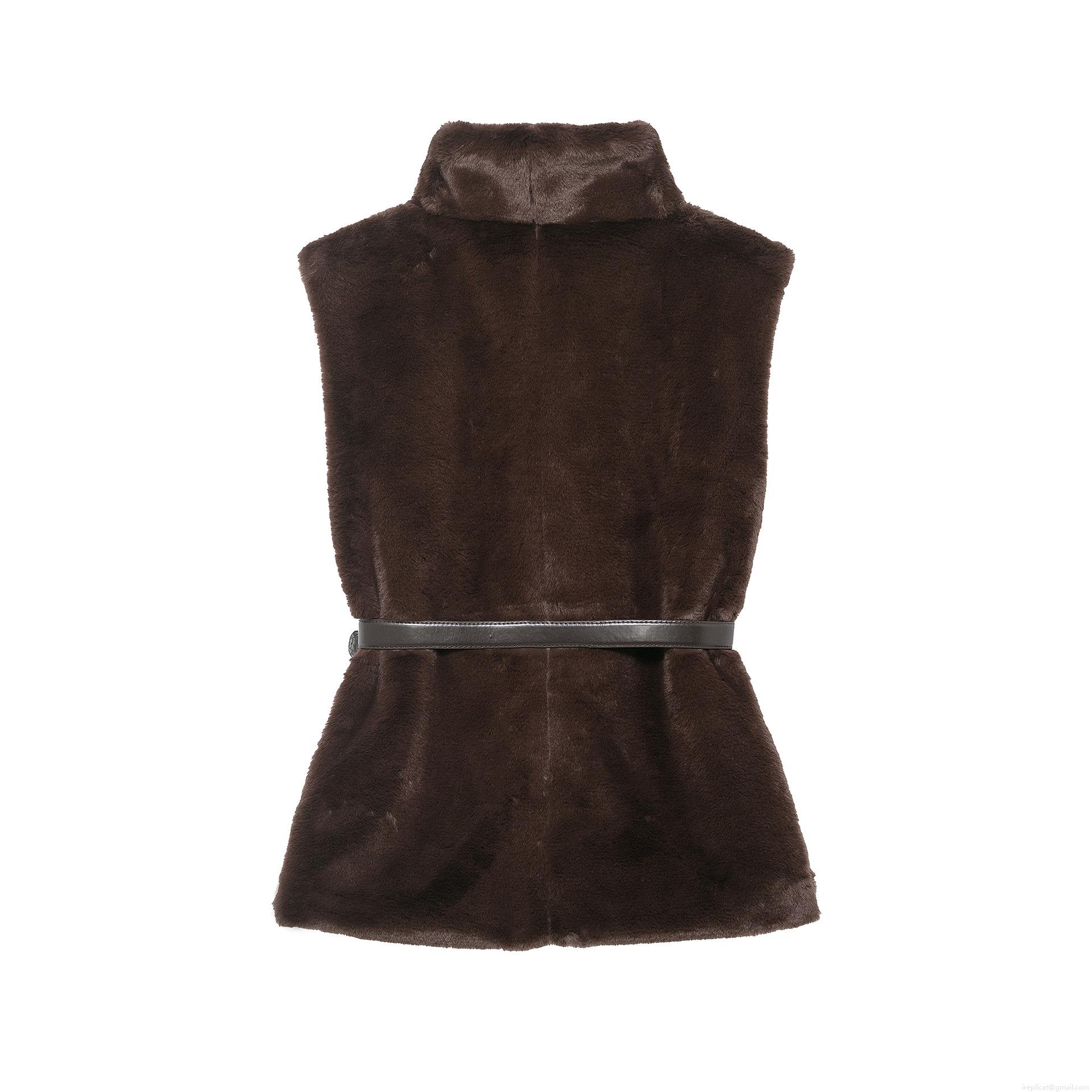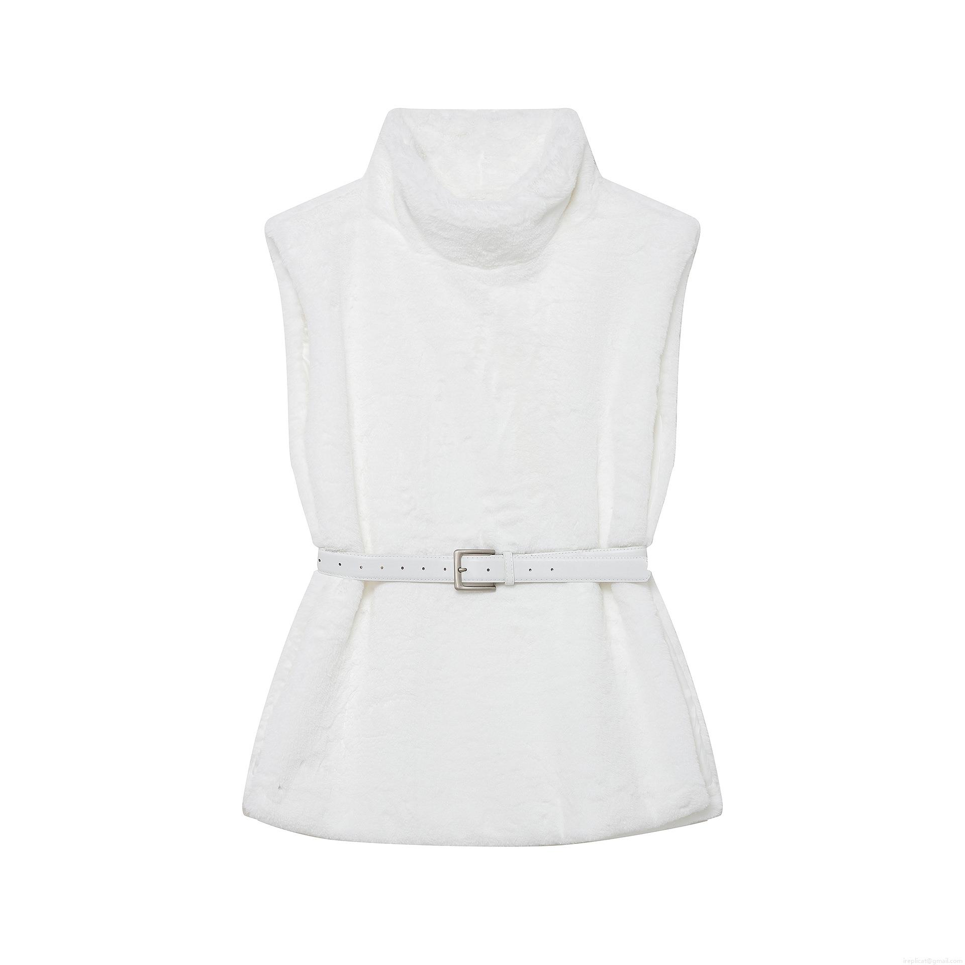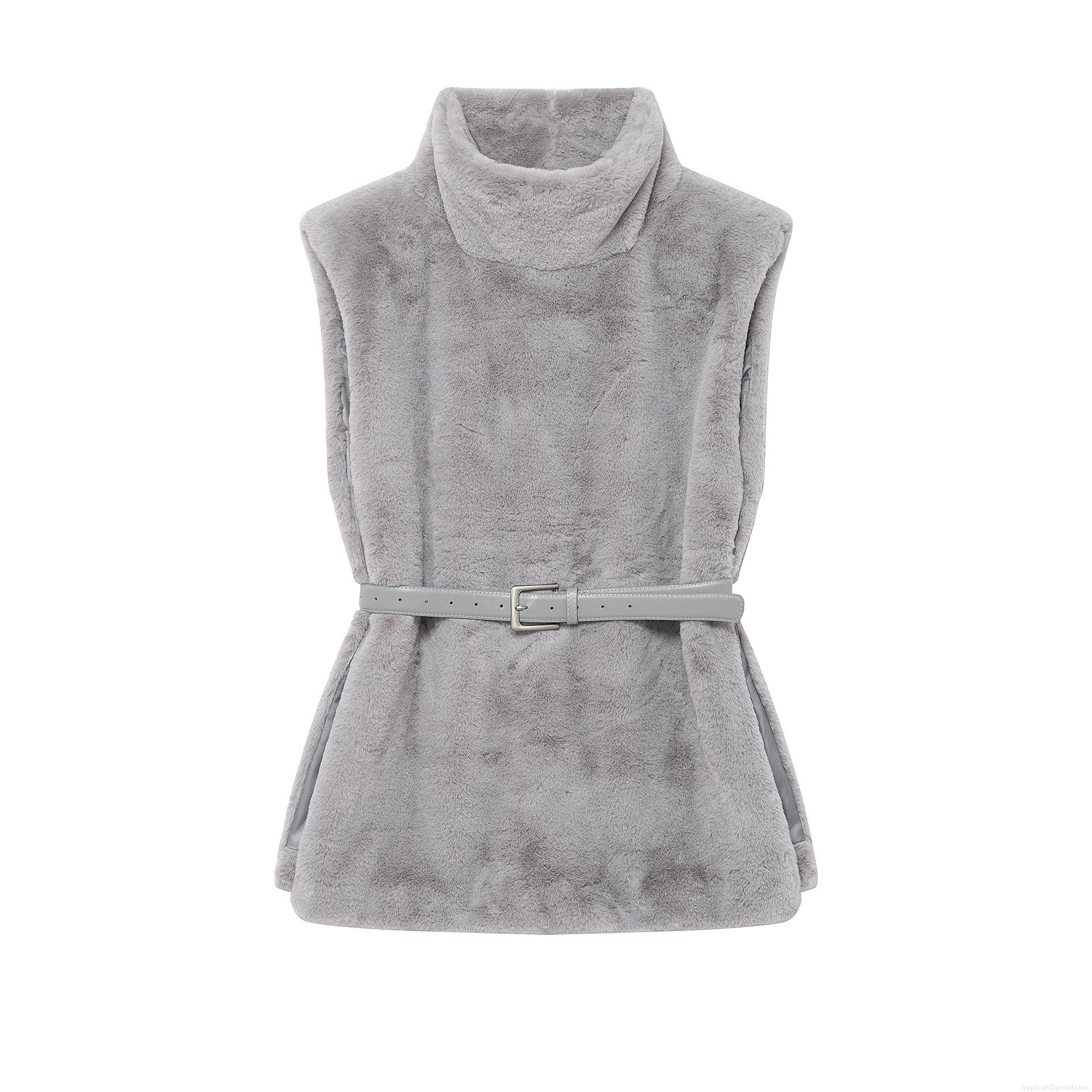 Women's Faux Fur Vest With Belt High Neck Sleeveless Mid-Length Solid Color Plush Waistcoat Casual Streetwear Outerwear For Autumn Winter