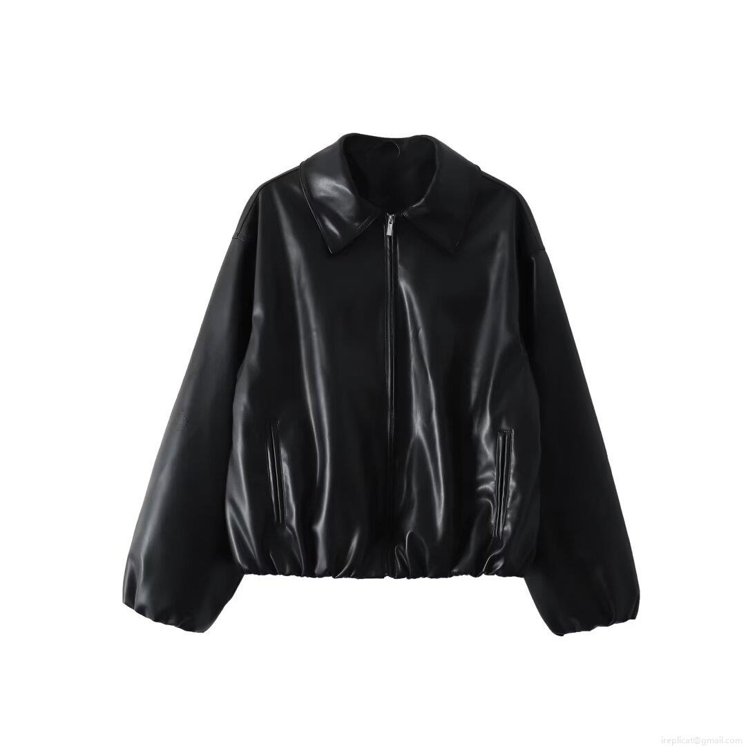 Women's Faux Leather PU Jacket Long Sleeve Lapel Zipper Outerwear Loose Streetwear Bomber Coat For Autumn Winter Windproof Fashion Lady Moto Jacket