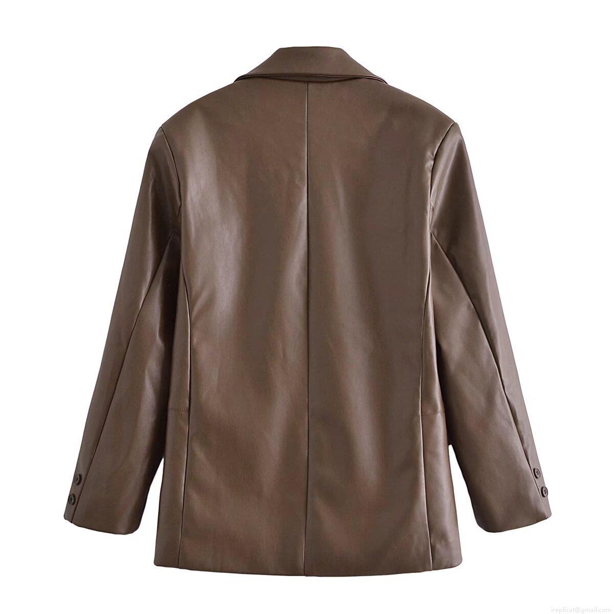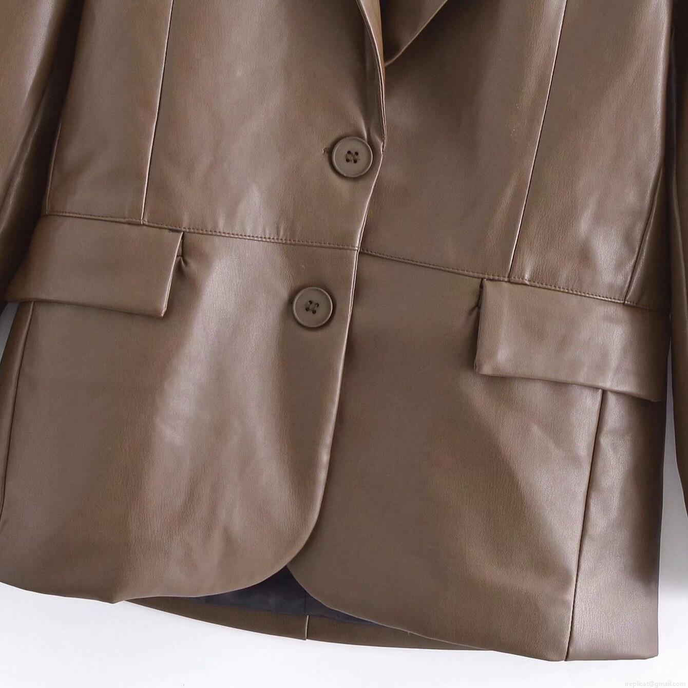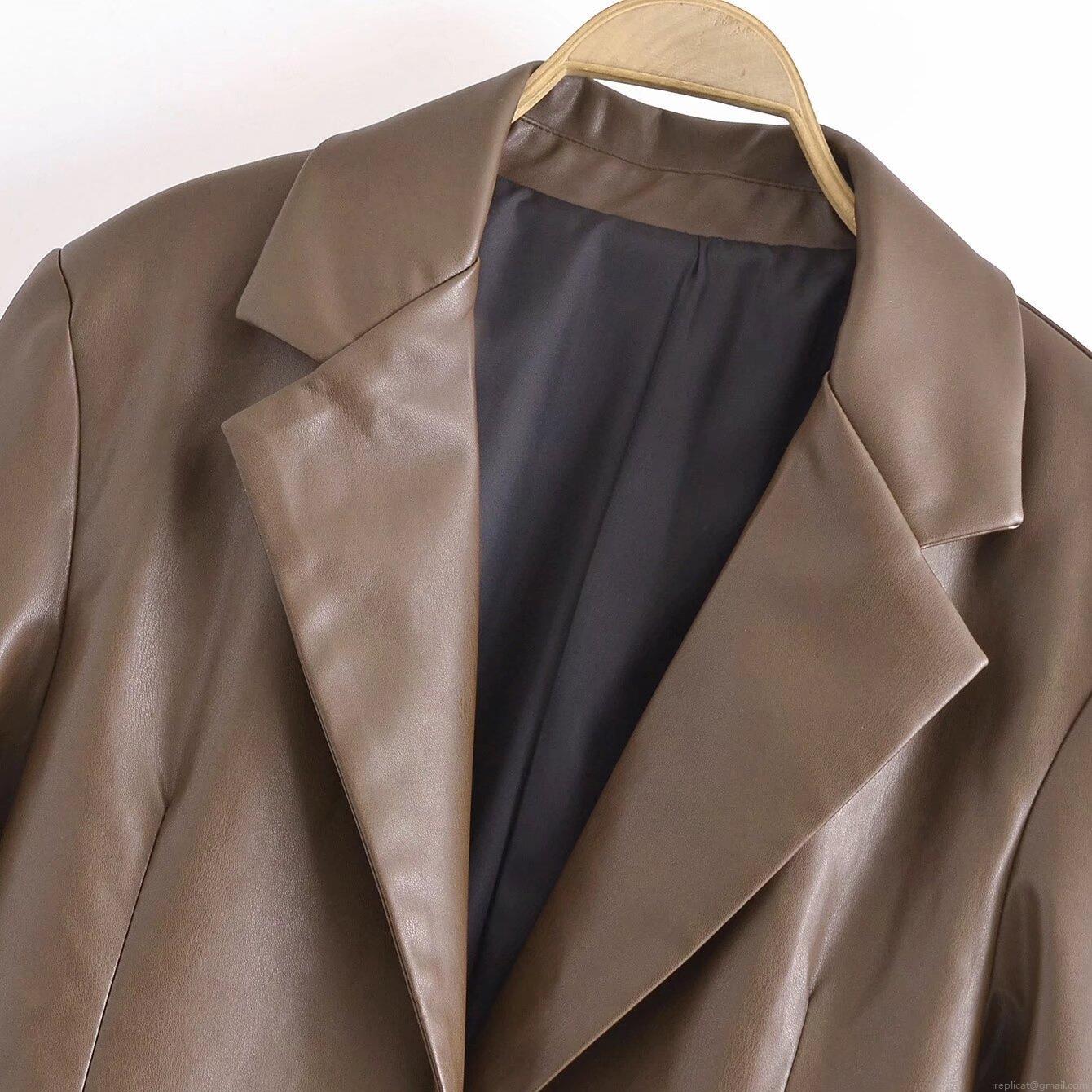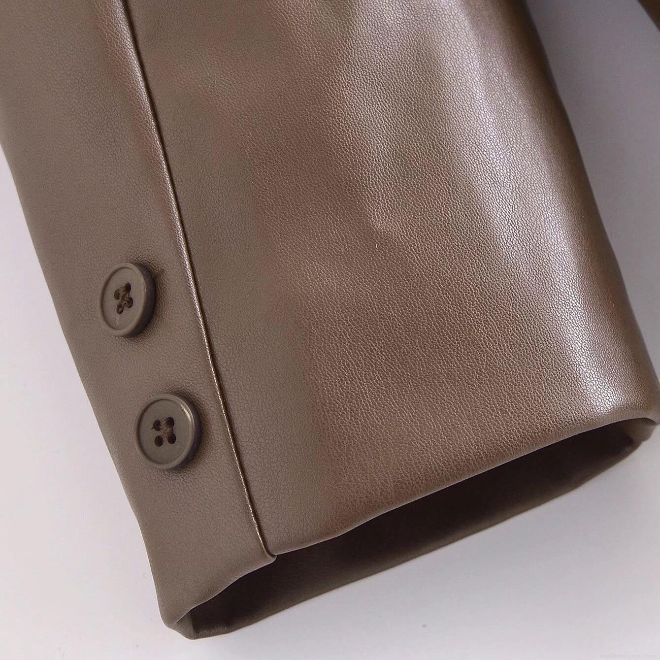 Women's Faux PU Leather Blazer Jacket Autumn Casual Loose Fit Long Sleeve Button Up Coat Elegant Office Lady Streetwear Solid Color Outerwear