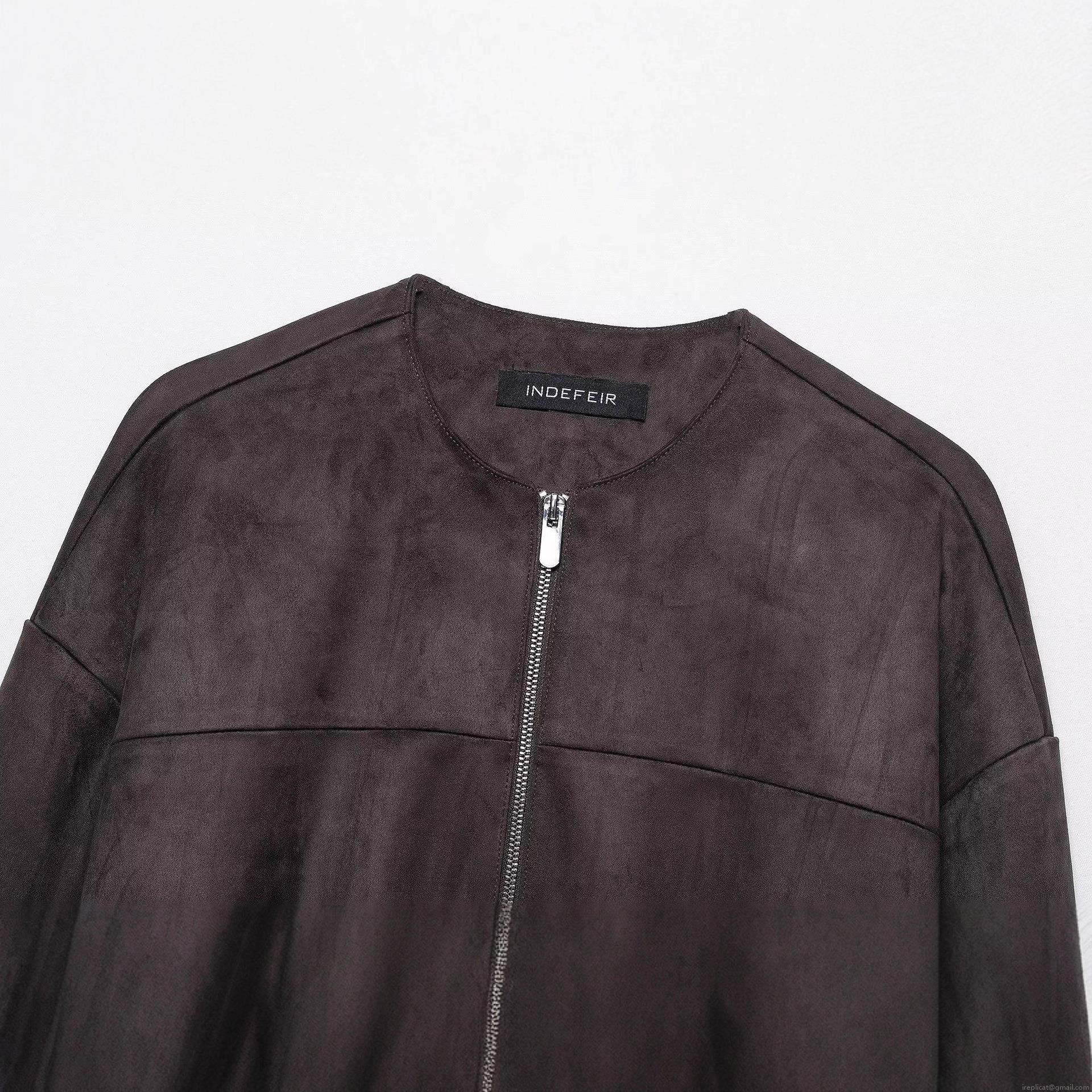 Women's Faux Suede Bomber Jacket Solid Color Round Neck Long Sleeve Zipper Coat With Elastic Hem Casual Streetwear Outwear For Autumn