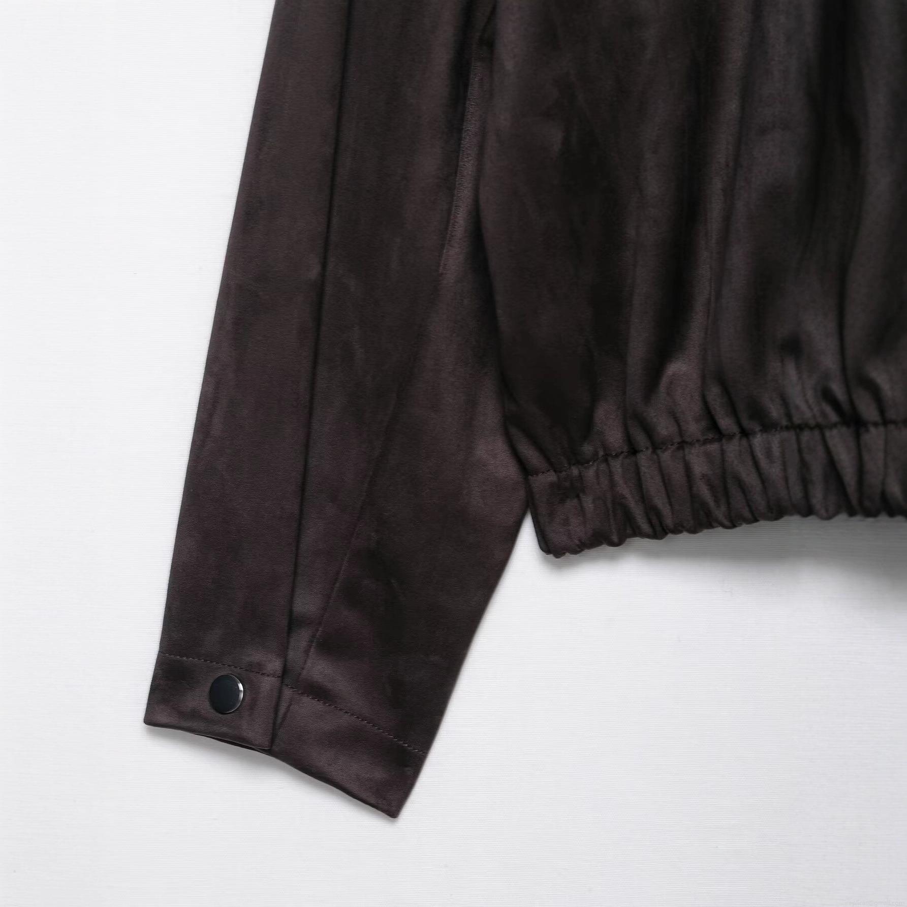 Women Suede Texture Lapel Long Sleeve Short Jacket Single Breasted...